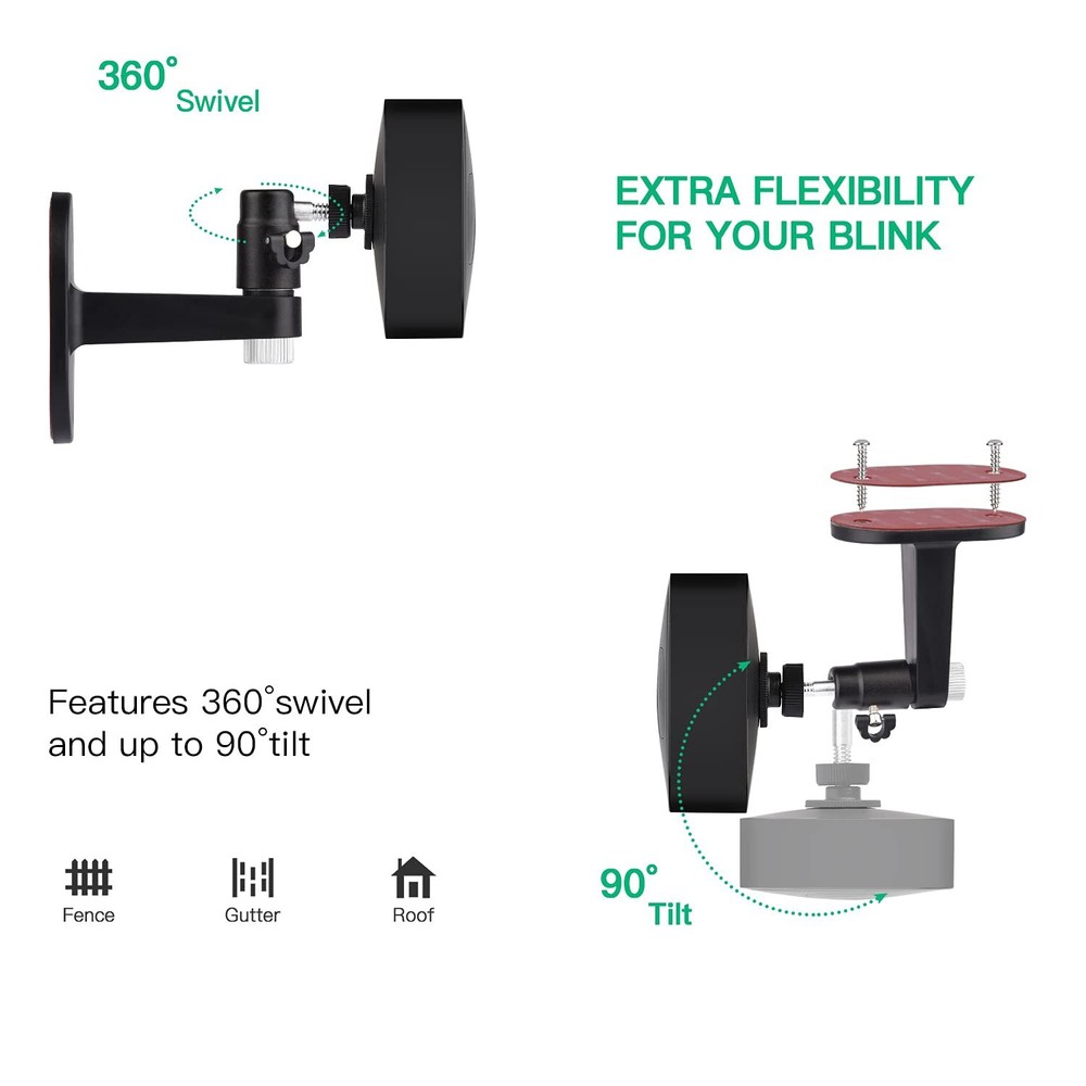 DESIGNED FOR YOUR BLINK - This mount is specially designed for Blink XT, Blink XT2, Blink Mini, Blink Outdoor 4 (4th Gen) / (3rd Gen) Camera. PLACE WHERE YOU WANT - These versatile mount brackets allow you to secure your blink cameras onto ceilings or walls, flexibly position your camera anywhere you want. PERFECT VIEW ANGLE - The mounts are easily adjustable and can swivel 360-degrees with a 90-degree tilt which allows you to adjust your cameras at your desired angle. EASY INSTALLATION - Strong adhesive tape included, incredibly hard to remove by hand. (Note: the adhesive tape only for smooth surface like tile, metal, glass or laminates, please use the Screws offered for the other kind of surface.) INDOOR & OUTDOOR USE - The security camera wall mount is suitable for garden, wall, indoor and outdoor, etc. Just put it in a broad and high place like a corner or roof to get a wider vision. We offer 1-5 Days Free shipping & 30-Days Free returns