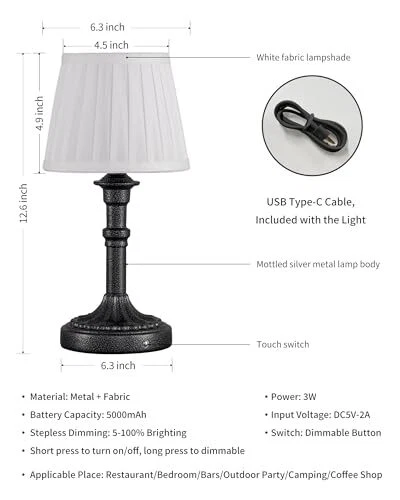 These cordless table lamps are a game-changer! The mottled silver and white shades add elegant texture, and the 5000mAh battery lasts forever. Love the stepless dimming—perfect for setting the mood anywhere. So convenient without cords, and the warm 2700K light makes any room cozy. Highly recommend this stylish, functional set!