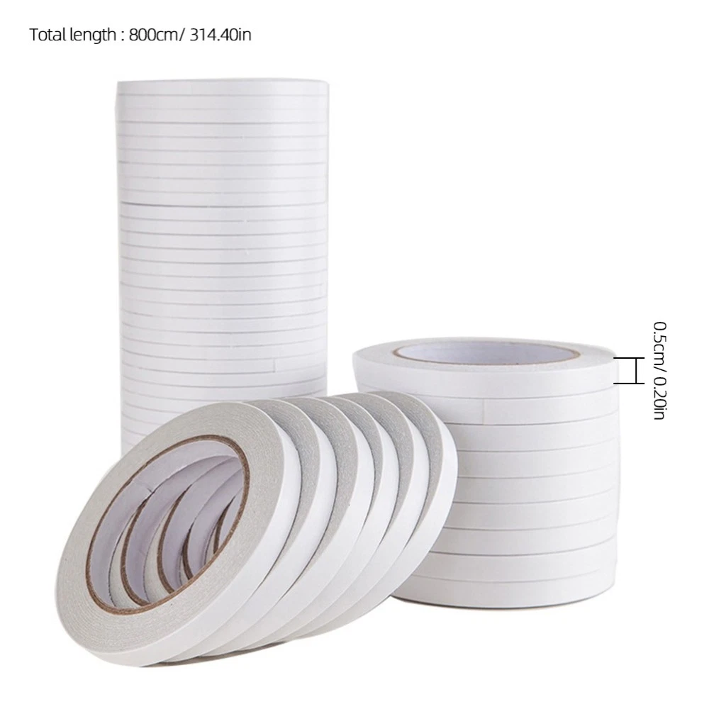 These double-sided tape rolls are a lifesaver for quick fixes and crafts! Super sticky, easy to use, and perfect for school projects or baby-proofing. The adhesive holds well without leaving residue—great value for the price!
