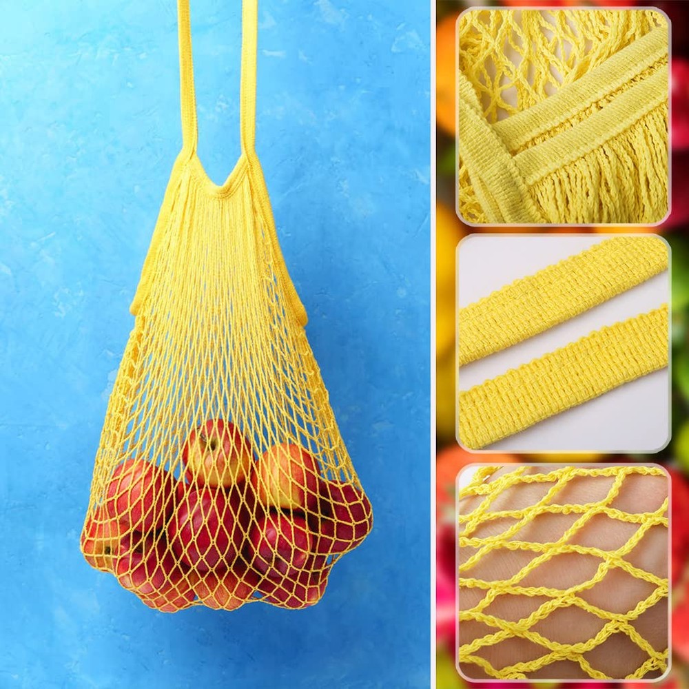 【Material Quality】This bag is made of 100% cotton, which is safe and environmentally friendly. 【Large Capacity and Sturdy】This bag is very sturdy and can hold a lot of things. It can be stretched, and the capacity after stretching may exceed your expectations. They are perfect for the home, grocery store and farmers market. The long handle makes it easy to carry, and you can tie a knot for added security. 【Light and Portable】This mesh bag is very light and very convenient to carry because it takes up very little space. You can keep them in your bag or in your car. 【Easy to clean and reusable】You can hand wash and machine wash, or dry in the dryer and use repeatedly. 【Wide Use】This stylish mesh storage bag can be used in many scenarios and hold various items. If it is used for shopping in shopping malls, grocery shopping, grocery storage, storage bags for vegetable and fruit merchants, it can be hung on the wall, or you can hang a basketball on the wall, it will look very fashionable and beautiful.