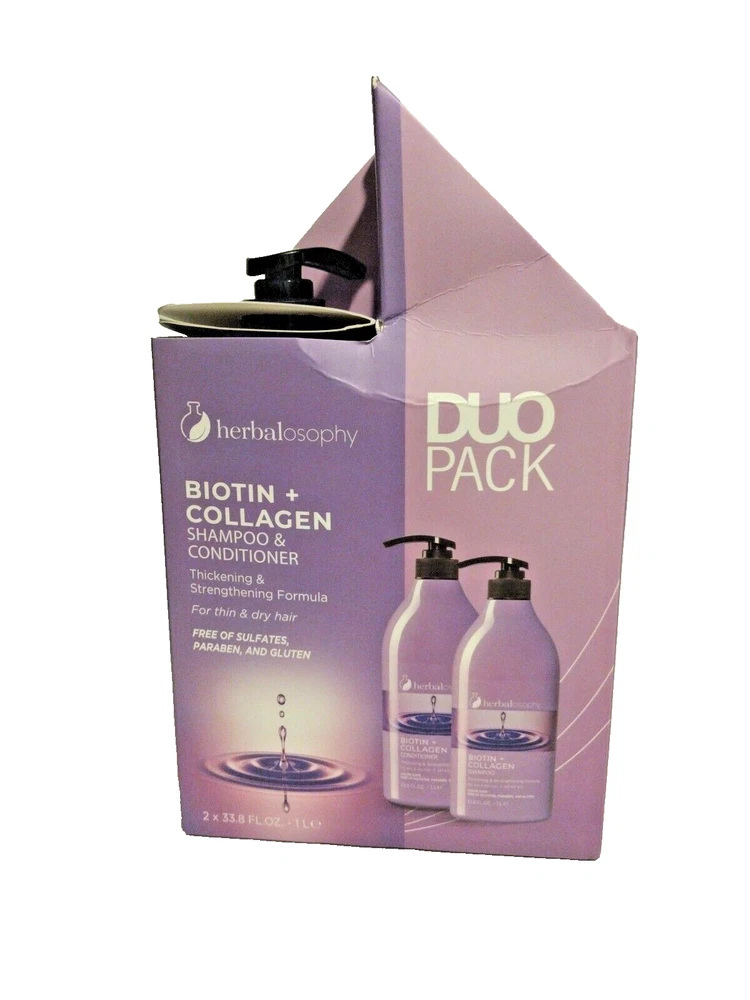 HERBALOSOPHY BIOTIN COLLAGEN Thicken Strengthen SHAMPOO CONDITIONER 33.8 oz.