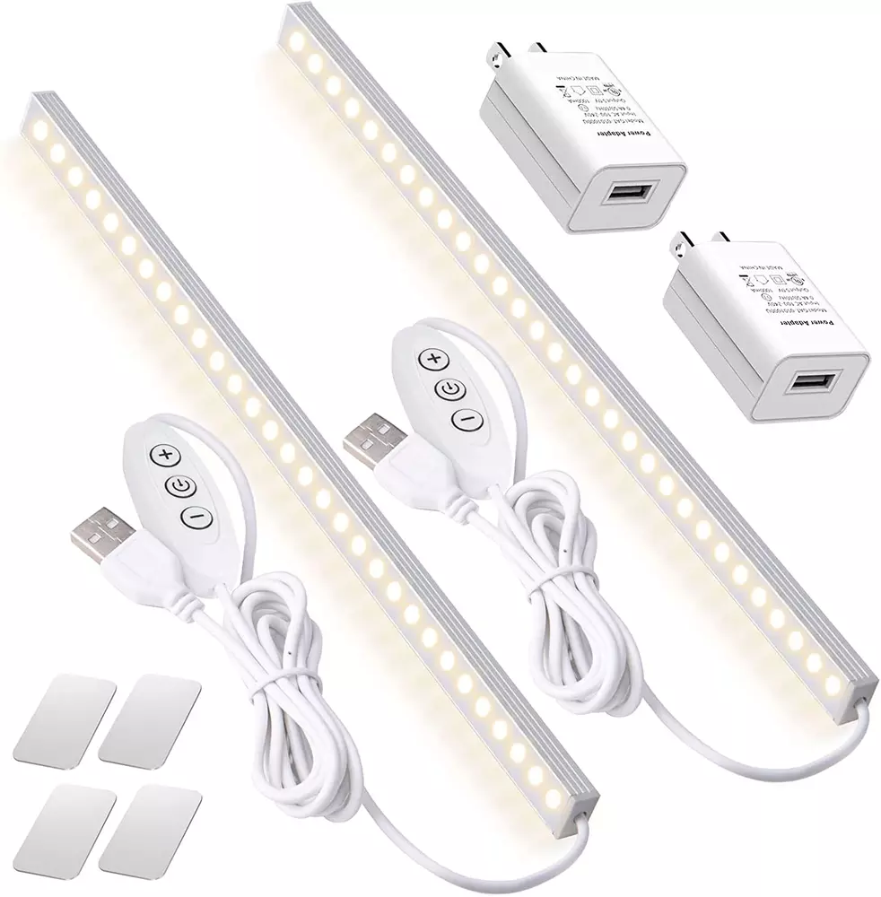 【Easy Installation】Kitchen lights can be installed in various ways, no screw needed, easy and handy.The built-in magnets allows you to remove or reinstall the light anytime. The wire length is 59 inches. The power cord is 59 inches long. 【ENERGY SAVING】Closet Lights with High-brightness LEDs are 85% more power-saving than fluorescent tubes, so you don’t need to spend too much electricity and can meet the daily needs of lighting; the life of LED lamp beads can reach 100,000 hours, so a MINI table lamp can be used for many years, and it is never used Buy a new lamp for the burnt out lamp. 【Health Eye Protection Lamp】USB Powered under cabinet lights driver adopts microcomputer controlled DC drive, no flicker, and protects people's eyes. Never worry that reading under the light will hurt your eyes. We all call it a health and eye protection lamp. 【Multiple Uses】LED Stick on Lights can be used in any scene that can provide USB interface power supply to meet any of your DIY designs, such as: kitchen, wardrobe, bedroom, university dormitory, console, desk, desk, etc. 【Complete Packaging Accessories】Under Counter Light Fixtures 2 sets of installation accessories include 4 double-sided tapes and 4 metal sheets, which are convenient to install in any place and do not need to be punched. LED under cabinet lighting provides free lifetime warranty. If there is any problem, we will respond and solve it within 24 hours Program. Product Description Kitchen Lights Closet Lights Professional LED lighting manufacturer, this LED cabinet light can be used in a variety of occasions, such as: kitchen, window, wardrobe, college dormitory, garage console. No Flicker Eye Protection Lamp Health eye protection lamp USB Powered under cabinet lights driver adopts microcomputer controlled DC drive, no flicker, and protects people's eyes. Never worry that reading under the light will hurt your eyes. We all call it a health and eye protection lamp. Easy Installation Application description of magnetic attraction function Iron sheet with adhesive backing The lamp is fixed with iron sheet, and there is a magnet inside the lamp that can be adsorbed and fixed by a magnet. Convenient lamp movement. Kitchen LightsKitchen Lights 3 ways to install, no screw needed, easy and handy.The built-in magnets allows you to remove or reinstall the light anytime. Complete packaging accessories Under Counter Light sets of installation accessories double-sided tapes Iron sheet with adhesive backing