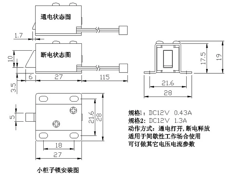 NEW-00023 2Pack Door Drawer Tongue Down Electric Lock Assembly Solenoid Slim Design Lock PRODUCT DESCRIPTION Features: High quality ultra-compact electric lock. Rustproof, durable, safety, convenient to use. Applicable for being installed in the escape doo or fire door electronic controlled system. Adopts the principle of electric magnetism , when the current through the silicon, the electromagnetic lock will achieve a strong suction which tightly suck the iron, thus lock the door. Instructions: Red wire connects to positive, green wire connects to negative. When it has been connected the wire and the current is available, the electric lock can control door's opening and closing. Specifications: Material: iron Item color: silver tone Wire quantity: 2pcs(1pc black+1pc red) Package Content: 2pc Electric Lock Assembly Solenoid Shipping Contact Us Our products have been sent to the US warehouse. All items will be shipped via WINIT CORPORATION. In 2-5 working days, you will receive your items. Thank you and have a nice day. If you have any question about us or items, please contact us, we will reply it as soon as possible. Shipping Our products have been sent to the US warehouse. All items will be shipped via WINIT CORPORATION. In 2-5 working days, you will receive your items. Thank you and have a nice day. Contact Us If you have any question about us or items, please contact us, we will reply it as soon as possible. PaymentShippingReturn policyAbout usContact us Copyright © - Tongtool All rights reserved | Design:Tongtool