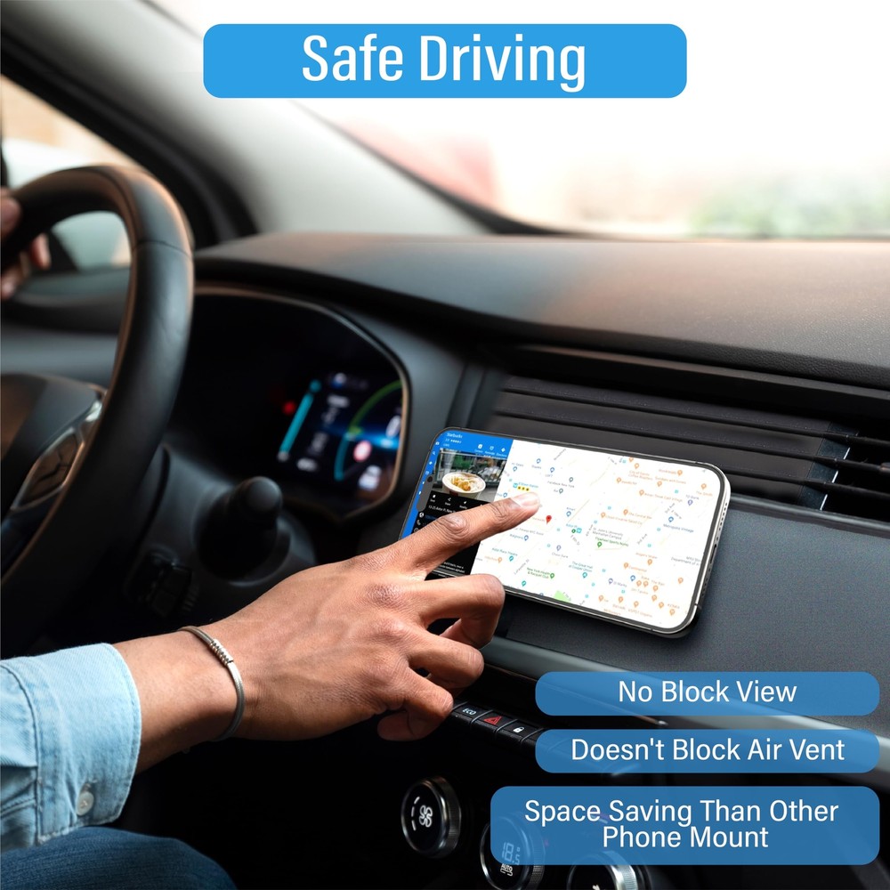 This magnetic phone mount is a game-changer for my car! The super strong N52 magnets hold my phone securely, even on bumpy roads. The zinc alloy design looks sleek and feels premium, while the 3M adhesive keeps it firmly in place. Love that it works with all my devices—super convenient and reliable!