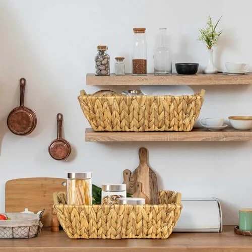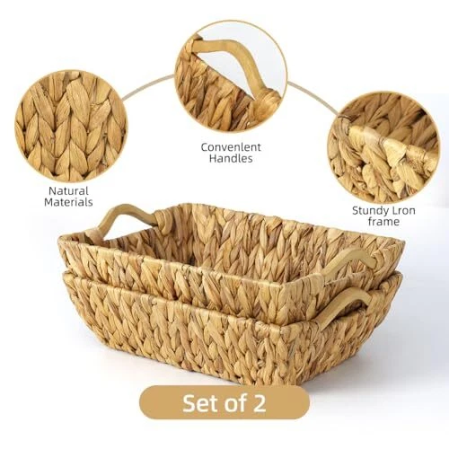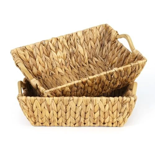Return Policy Fast Delivery Trusted seller 2-Pack Wicker Baskets with Wooden Handles, Hand-Woven Water Hyacinth Wicker Baskets, Storage Baskets for Organizing, Decorative Woven Basket for Bedroom, Living Room, Bathroom, Shelves Product Description Handmade: This Wicker basket is carefully crafted by skilled artisans, using a hand-weaving design.Natural wicker baskets can add beauty and style to your home Natural Material: Made entirely of natural water hyacinth, this hand-knitted wicker basket is not only natural and environmentally friendly, but each water hyacinth basket is a unique craft Convenient Handles: The Wicker storage baskets with thickened wooden handles on both sides, easy to carry and move around as needed. The handles also add a decorative touch to the overall design Multiple-use Woven Basket: These hyacinth storage baskets are ideal for books, magazines, toilet papers, towels, makeups, fruits, snacks storage. Additionally, it can be used in bathrooms, vanities, entryway tables, bookshelves, kitchen counters, or office desks, demonstrating its versatility in numerous situations Product Size: 2 Pack wicker baskets for organizing size: 14.3"" Length x 10.8"" Width x 4.2"" Height. This rectangle wicker baskets for shelves fits all people, if you have questions, please contract us for immediate assistance Shipping Returns Payment Shipping Shipping is FREE to all addresses other than APO/PO boxes in the lower 48 states. All our stock ships from US-based warehouses. Shipped via USPS or UPS (depending on location and package weight) Unless stated otherwise, all orders will ship within 24-72 hours of your payment being processed. Check our feedback to see the great reviews of FAST shipping we offer. Returns Seller does not accept returns Payment We currently accept payment via eBay managed payments only. Once payment is cleared, we will dispatch your shipment within 1-3 business days. Please refer to the "Shipping" tab for more information regarding shipping speed to your destination.