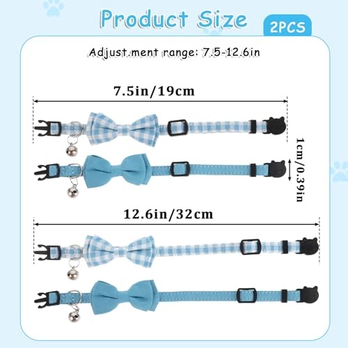 Return Policy Fast Delivery Trusted seller 2Pcs Cat Collars Breakaway with Cute Bow Bell, Cat Collar for Boy Cats and Girl Cat, Kitten Collar Plaid Cat Collar with Removable Bowtie, Adjustable Cute Pet Kitten Collar for Cat Kittens(Blue) Product Description 【Size Adjustable】This blue kitten collar is 0.4 inches in width, the length can be adjusted from 7 inches to 12 inches, and the bow tie can be detached by the elastic band. Ideal fashion accessory for everyday use and special holidays. 【Soft and Durable】The two cat collar breakaway in this set are made of different materials, the solid color one is made of suede and the plaid one is made of cotton. They are very gentle on your pet's skin without sacrificing durability. 【Cute Style Design】The design style of this boy cat collar set is basic and classic, each set includes 2 collars, one in basic solid color and one in casual plaid pattern. With timeless style. Perfect for everyday wear, parties, birthdays, weddings and photo shoots. 【Detachable Design】We use a safety breakaway buckle on this set of kitten collar with bell, the buckle will quickly release when under pressure, safe for pets and easy for you to put on and take off The detachable bow tie adds a touch of elegance and makes the blue cat collar suitable for all occasions. 【Collar with Bell】These small bowtie cat collar are equipped with a safety disconnect buckle, which can be easily released under pressure, and a bell with a melodious ringing sound, allowing you to find your cute kitty immediately. Helps to find your pet If your pet is trapped, it is free to break free. Shipping Returns Payment Shipping Shipping is FREE to all addresses other than APO/PO boxes in the lower 48 states. All our stock ships from US-based warehouses. Shipped via USPS or UPS (depending on location and package weight) Unless stated otherwise, all orders will ship within 24-72 hours of your payment being processed. Check our feedback to see the great reviews of FAST shipping we offer. Returns Seller does not accept returns Payment We currently accept payment via eBay managed payments only. Once payment is cleared, we will dispatch your shipment within 1-3 business days. Please refer to the "Shipping" tab for more information regarding shipping speed to your destination.