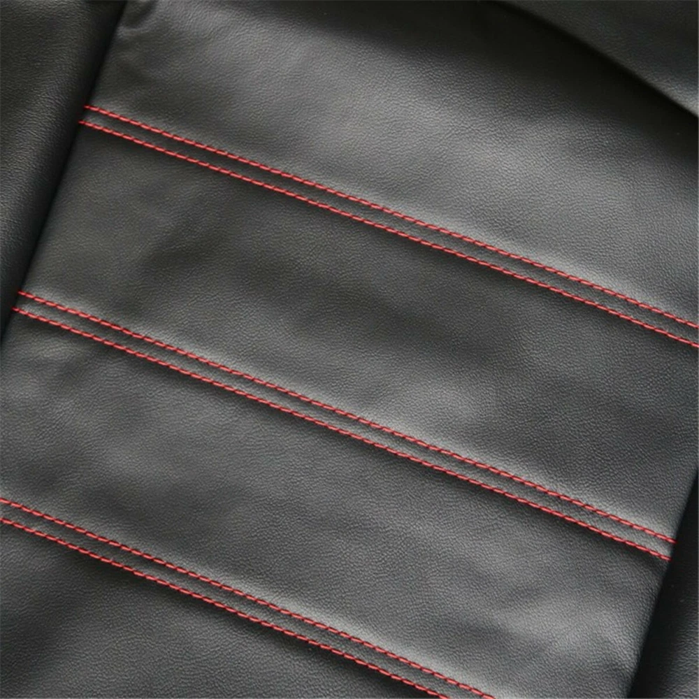 Details Seat Covers Car Front Cushion Protector High Back Bucket Black Leather Universal Items Description: PROTECTION - the seat cover protects your car seat against spills, dirt, moisture, sweat and other unaesthetic things. The seat cover will blend nicely into any car and will not clash to the interior as it is colored in classic black+red. UNIVERSAL FIT - the seat cover fits almost all seats from cars, Trucks, Vans, & SUV. Product Features: Features innovative fabric and design Updates the appearance of old or dirty seats Protects against splits, stains, fading, dirt, and pet hairs Easy to install and fits most bucket seats One-piece seat cover Fits most sedans and SUVs with standard seats Fits bucket seats with adjustable head rests The package includes: 2PCS