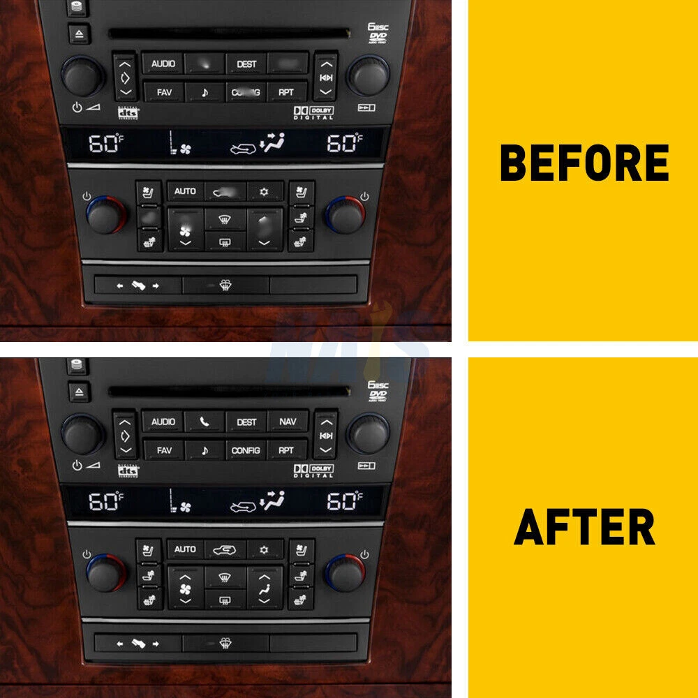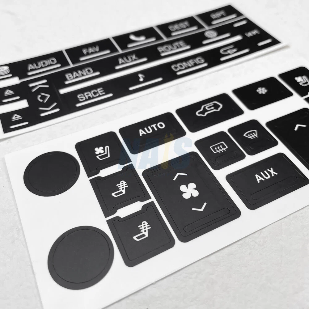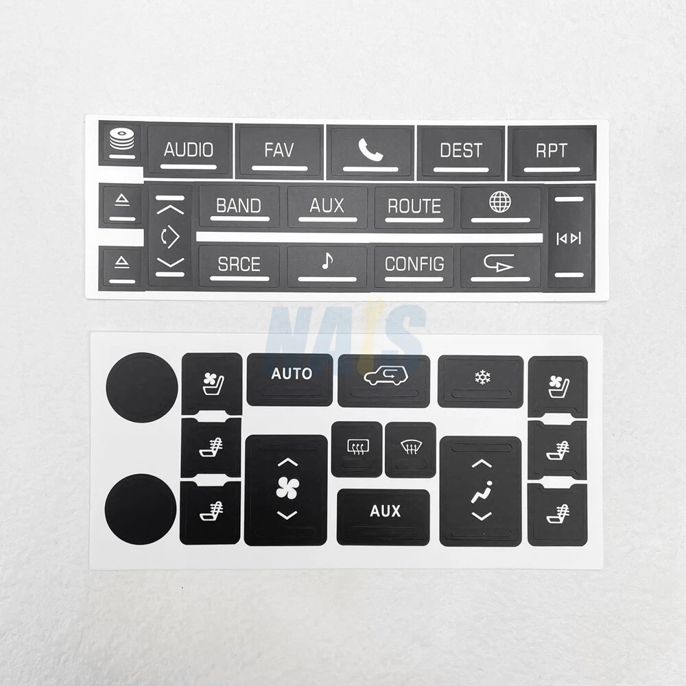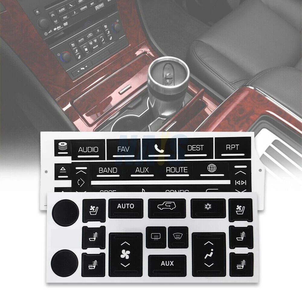 Fitment: For 2007-2014 Cadillac Escalade Package Include: 1Pc Navigation Radio Button Repair Decal 1Pc AC Climate Control Button Repair Decal Features: These overlays will adhere to the factory acrylic button, and with proper installation it's guaranteed against sun fade and pealing. Made from professional commercial grade plastic matte vinyl, with blacked film adhesive to dramatically reduce "light bleed through" which most other kits have a problem with. The decals also include small white icons and are also cut to allow factory lighting to come through your truck or SUV. Match your Climate Control/Radio Stereo unit with the product picture. Clean the surface of any dirt and oil. Apply each decal over the matching buttons. It's just that easy. Please Note: Please have the surface complete clean and dry first before applying this Slowly peel off the back sheet off the decal and apply to the correct place Do not use high pressure water gun to flush Contact us: Negative feedback will not help resolve any problems you have, please contact us via eBay messages before leaving negative feedback, our customer service will make best effort to help you with the issues. On Dec 2, 2024 at 20:14:38 PST, seller added the following information: