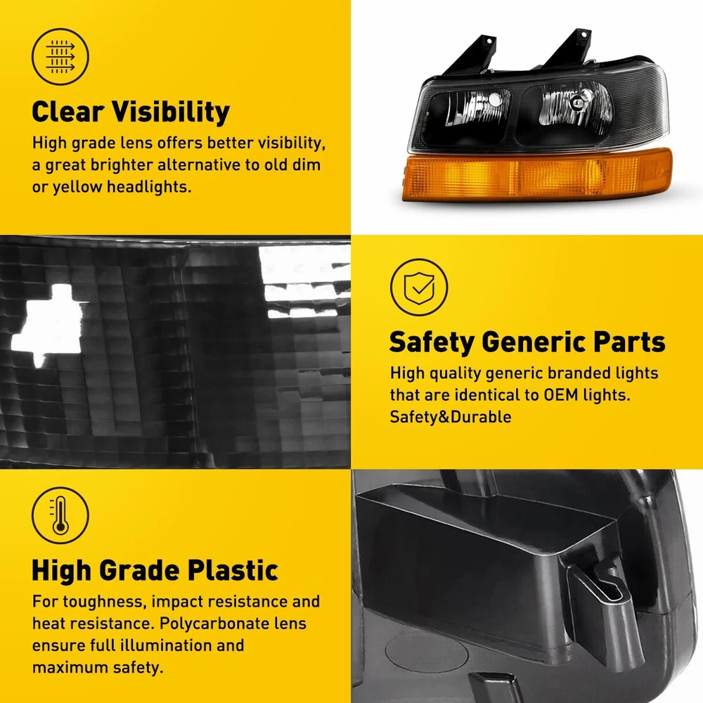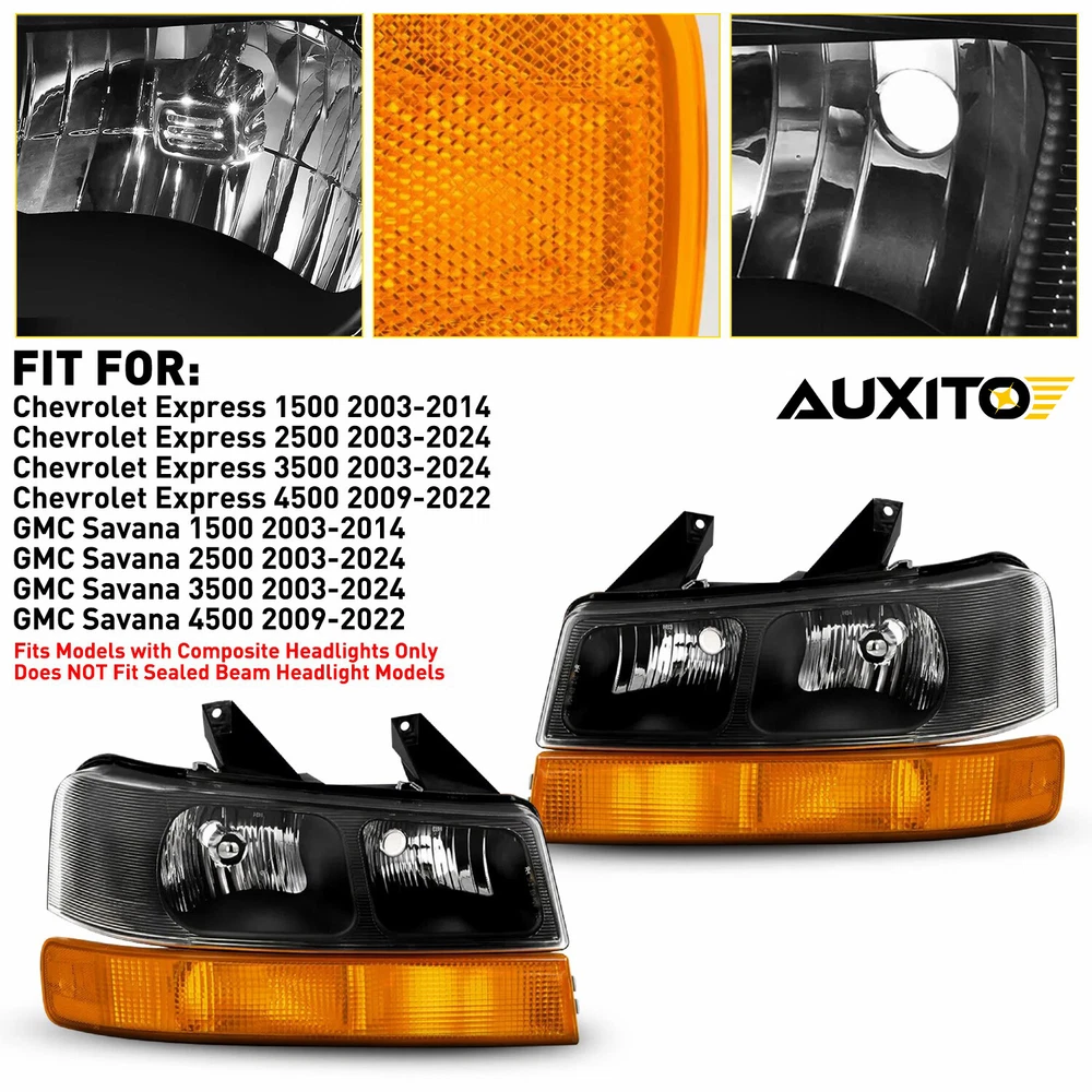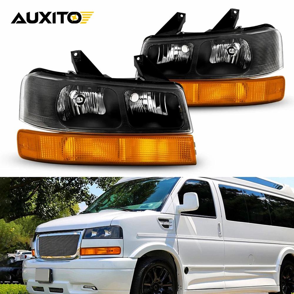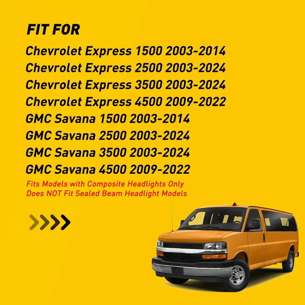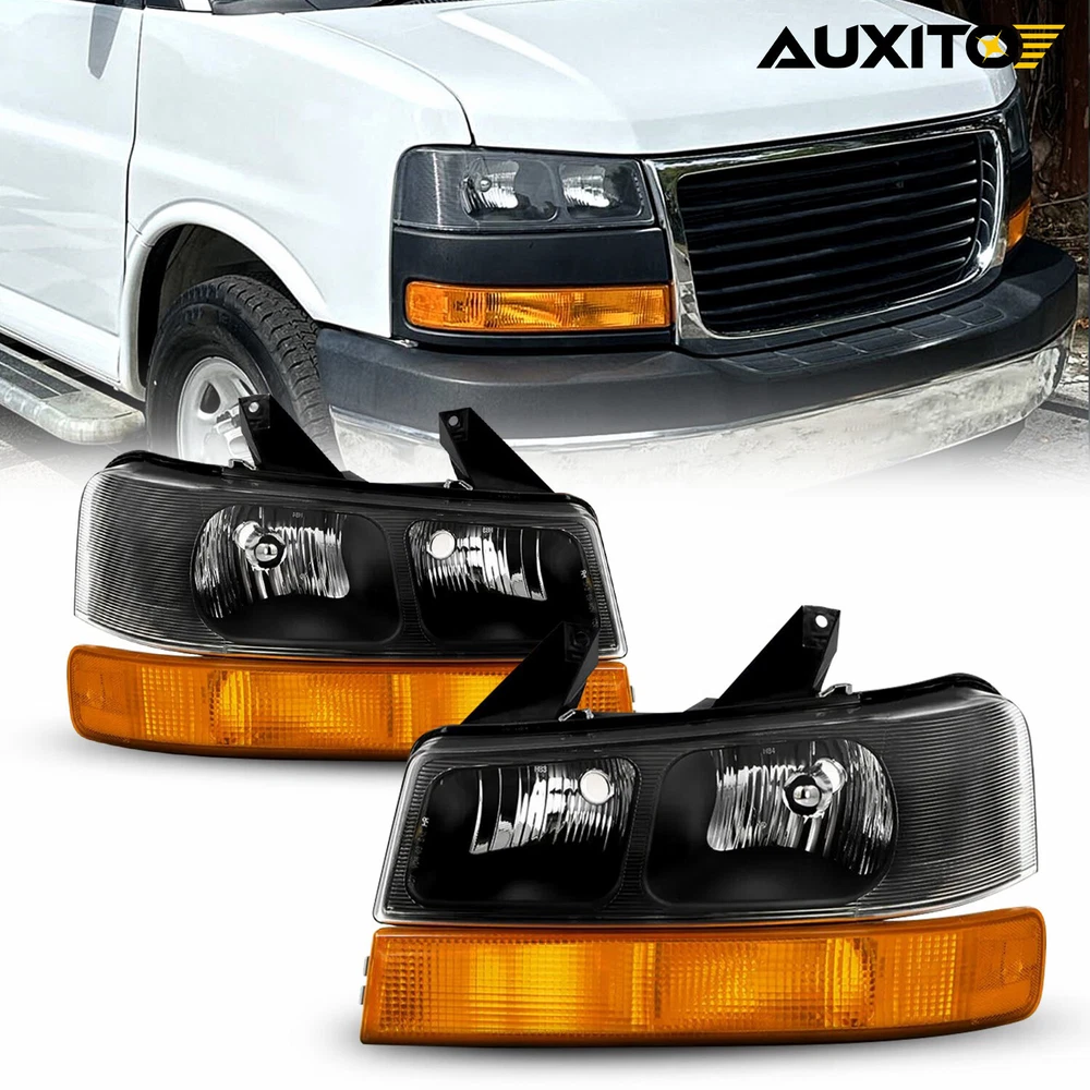 Headlights Headlamps Fit For Chevrolet Express,GMC Savana etc Fit for: Chevrolet Express 1500 2003-2014 Chevrolet Express 2500 2003-2024 Chevrolet Express 3500 2003-2024 Chevrolet Express 4500 2009-2022 GMC Savana 1500 2003-2014 GMC Savana 2500 2003-2024 GMC Savana 3500 2003-2024 GMC Savana 4500 2009-2022 Fits Models with Composite Headlights Only Does NOT Fit Sealed Beam Headlight Models Specifications: OE number: 15879433, 15879432, 84218437, 84218438 GM2502233 GM2503233 GM2520188 GM2521188 Material: ABS+PC (ABS Plastic Housing/Polycarbonate lens) Appearance color: 1.Housing Color:Black 2Pcs Headlights Lamp Amber Reflector For 03-2014 Express/Savana 1500-3500 09-22 Headlights Headlamps Fit For Chevrolet Express,GMC Savana etc Fit for: Chevrolet Express 1500 2003-2014 Chevrolet Express 2500 2003-2024 Chevrolet Express 3500 2003-2024 Chevrolet Express 4500 2009-2022 GMC Savana 1500 2003-2014 GMC Savana 2500 2003-2024 GMC Savana 3500 2003-2024 GMC Savana 4500 2009-2022 Fits Models with Composite Headlights Only Does NOT Fit Sealed Beam Headlight Models Specifications: OE number: 15879433, 15879432, 84218437, 84218438 GM2502233 GM2503233 GM2520188 GM2521188 Material: ABS+PC (ABS Plastic Housing/Polycarbonate lens) Appearance color: 1.Housing Color:Black 2.Lens Color:Clear 3.Reflector Color:Amber Note: Projector ×(Not include) DRL × (Not include) Bulb × (Not include) Features: *Easy to install: Direct replacement, drilling and cutting are not required. *Superior quality: Made of ABS and PC materials with toughness and heat resistance functions to ensure its long service life and durability. *Angle adjustment: Equipped with a headlamp Angle adjustment knob, you can adjust the best Angle of view through the knob. *Suggestion: 1.Please confirm the OE number before purchasing!!! 2.Professional installation is required!!! Packaging include: Headlights*2(Left+Right) Item Specifics Mounting Style Screws Bulbs Included No Fitment Type Direct Replacement Items Included Without bulb(s) Manufacturer Part Number DDZC-EPS-03-14S-BA-EXA Material ABS Plastic / Polycarbonate Lens Superseded Part Number 15879433, 15879432, 84218437, 84218438 Placement on Vehicle Front, Left, Right California Prop 65 Warning This product contains chemicals known to the State. Brand AUXITO Bulb Shape Code 9005 High / 9006 Low Beam / 194 Marker Type Headlight Assembly Interchange Part Number GM2502233 GM2503233 GM2520188 GM2521188 2003 2004 2005 06 07 08 OE/OEM Part Number 15879433 15879432 84218437 84218438 09 10 11 12 13 14 15 16 17 18 Housing Color Black Style OE Features Reflector Housing Lens Color Clear Turn Signal 3157A Lighting Technology Halogen UPC Does Not Apply Payment We only accept PayPal payment, should be received within 3 days from the date of purchase. Please keep the consistency of Paypal address and ebay address. Payment should be made within 4 days once you won a item ,or ebay will launch Unpaid Reminder agaist you and there will be bad record on your ebay account . Buyers are responsible for import duties, custom fees and taxes.Please check with your country's custom office to determine the additional costs before you finally make the purchase Shipping All items will be shipped in 48 hours after receiving your payment . We ship this item to US only via USPS first class mail. It usually takes 3-6 working days to deliver. Returns We offer 30 days return policy. Please contact us within 30 days t from the date you receive your order if you have any issues with the product or want return .Refund will be send after we got your resend package. All returned items should be in the original packaging , return tracking information should be provided .. Buyer is responsible for return shipping cost due to the problem not caused by item quality itself . Contact Us Our office hours are MONDAY - FRIDAY 9:00PM - 6:00PM PST, but we will response you once we get your message .There will be some delay on response if you send message or E-Mail on weekend. FAQ Q1: Will this bulb fit my vehicle? A: We can match almost any vehicle to one of our bulb sizes. eBay only lets us include partial vehicle fitments per listing, but if your vehicle does not show up on the compatibility table at the top of our listings, welcome you to contact us for free consulation before purchasing a product. Q2: My item has not arrived, what's taking so long? A: Sometimes items take longer than expected, especially if it’s going far or to rural area. Check with your post office to see if your item has been held up. Sometimes USPS will not update a tracking number until it has arrived at its destination. If your item still has not arrived after a few days, let us know so we can double check for you and help solve it asap. Q3: Do I need to mention the Year, Make and Model in the notes when place order? A: YES. Please include the Year, Make, and Model in the notes section during checkout to ensure you receive everything needed for your kit! Q4: My bulbs won't fit, help! A: Special bulb holder may be required. See if you can take the holder from the stock bulb. If not, let us know. The bulb size may be wrong, double check the item you received with the item you ordered. Do you have an aftermarket lighting housing? These may not be perfectly fitted for aftermarket bulbs and will require some manual modifications. Q5: Neither side lighting up? Both sides flicker, flash, or work inconsistantly. A:Check the headlight fuses, and then check the ballast plugs to insure correct installation. If this doesn't work, there may be a voltage problem with the vehicle. You probably just need a relay or capacitor. Q6: WARNING ABOUT POLARITY Unlike halogen bulbs, LED are polarity sensitive. BEFORE you start your LED kit installation, verify the polarity on your vehicle by simply plugging the LED bulb into your vehicle socket. - if your light turns on, please proceed to install both bulbs onto your vehicle. - if your light DOES NOT turn on, disconnect the bulb and flip
