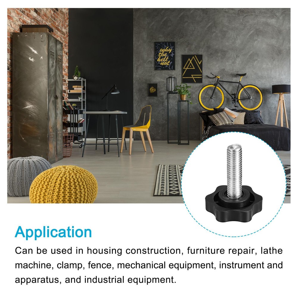 Document APPLY TO - Can be used in housing construction, furniture repair, lathe machine, clamp, fence, mechanical equipment, instrument and industrial equipment.SPECIFICATION:Material: Metal, PlasticHead Dia: 38mm/1.47"Thread Size: M10x35mm (D*L)Total Height: 54mm/2.10''QUANTITY INCLUDED - 2pcs x Clamping Handle Screw KnobsADVANTAGE - Made of metal material, it has good hardness and can be fastened for a long time. Star-shape plastic knob, it is non-slip and not easy to break.Note: Please confirm the thread size of the clamping handle screw knobs before purchasing. 2Pcs M10x35mm Clamping Handle Screw Knobs Metal Crank Tapered Grip APPLY TO - Can be used in housing construction, furniture repair, lathe machine, clamp, fence, mechanical equipment, instrument and industrial equipment. SPECIFICATION: Material: Metal, Plastic Head Dia: 38mm/1.47" Thread Size: M10x35mm (D*L) Total Height: 54mm/2.10'' QUANTITY INCLUDED - 2pcs x Clamping Handle Screw Knobs ADVANTAGE - Made of metal material, it has good hardness and can be fastened for a long time. Star-shape plastic knob, it is non-slip and not easy to break. Note: Please confirm the thread size of the clamping handle screw knobs before purchasing. Hot Item Payment 1.We accept eBay payment . 2.Payment must be received within 7 business days of auction closing. Shipping 1.We ship to your eBay or Paypal address. Please make sure your eBay and Paypal address is correct before you pay. 2.Items will be shipped within 1-3 business day when we received payment. 3.Delivery time depends on destination and other factors. Description Policy 2Pcs M10x35mm Clamping Handle Screw Knobs Metal Crank Tapered Grip APPLY TO - Can be used in housing construction, furniture repair, lathe machine, clamp, fence, mechanical equipment, instrument and industrial equipment. SPECIFICATION: Material: Metal, Plastic Head Dia: 38mm/1.47" Thread Size: M10x35mm (D*L) Total Height: 54mm/2.10'' QUANTITY INCLUDED - 2pcs x Clamping Handle Screw Knobs ADVANTAGE - Made of metal material, it has good hardness and can be fastened for a long time. Star-shape plastic knob, it is non-slip and not easy to break. Note: Please confirm the thread size of the clamping handle screw knobs before purchasing. Hot Item Payment 1.We accept eBay payment . 2.Payment must be received within 7 business days of auction closing. Shipping 1.We ship to your eBay or Paypal address. Please make sure your eBay and Paypal address is correct before you pay. 2.Items will be shipped within 1-3 business day when we received payment. 3.Delivery time depends on destination and other factors.
