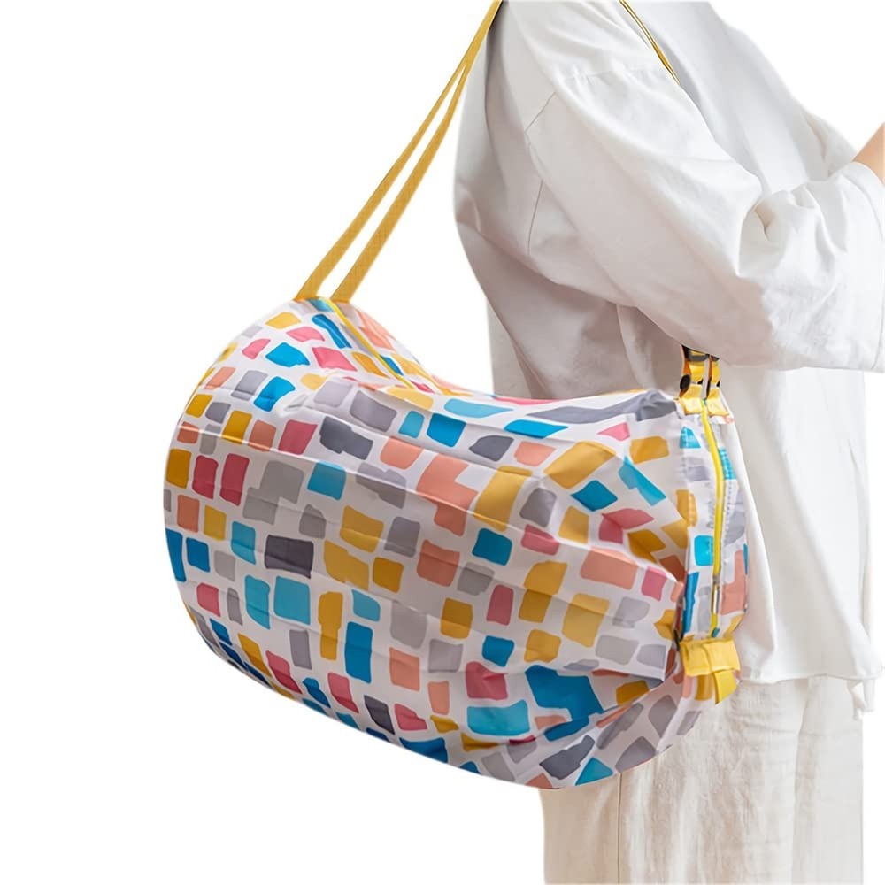 2-Pcs Reusable Grocery Bags with Handles Foldable Washable Shopping Bags Waterproof Large Capacity Shopping Tote Bag Product Details Style: Yellow Square Brand: Woonsoon MPN: Q85 UPC: 650563385016 EAN: 0650563385016 Product Dimensions : 3.14 x 3.14 x 3.14 inches; 8.64 ounces Item model number : Q85 Department : Unisex Date First Available : April 13, 2022 Manufacturer : Woonsoon Best Sellers Rank: #440,454 in Kitchen & Dining (See Top 100 in Kitchen & Dining) #8,194 in Kitchen Reusable Grocery Bags #8,194 in Kitchen Reusable Grocery Bags Customer Reviews: 4.3 4.3 out of 5 stars 96 ratings HIGH QUALITY FABRIC: High quality waterproof fabric design, machine washable, easy to clean, quick drying. ELASTIC BANDAGE: Elastic bandage design, convenient storage, fast storage, does not occupy space. SHOULDER BUCKLE DESIGN: The design of shoulder strap buckle can adjust the length freely for easy use. FEATURES: POLYESTER MATERIAL: Wear-resistant and durable, you don't need to worry about break or cracking while using it , and can toss the cloth shopping bags right into the washer and save your time. QUALITY FASTENER: Freely adjustable to be used by shoudler/hand, you can use it as totes by hands , or shoulder bags by shoudlers . it's practical for daily use such as shopping, picnic, travel, or as a gift to friends. ELASTIC BAND: Stay flexible after repeatedly used, you can fasten the folded bags quickly to prevent it from becoming loose and taking up space. ENVIRONMENT FRIENDLY: When you use this reusable bag, you will reduce the use of multiple plastic bags every week; while the strong and beautifully designed bag optimizes your shopping experience, it also helps you contribute to the protection of the ecological environment. FOLDING STEPS: STEP 1: Pull both sides STEP 2: Straighten to the left and right sides STEP 3: Roll from one end STEP 4: Cover with the elastic band STEP 5: Folding completed (You can also refer to the graphic steps in the product pictures)