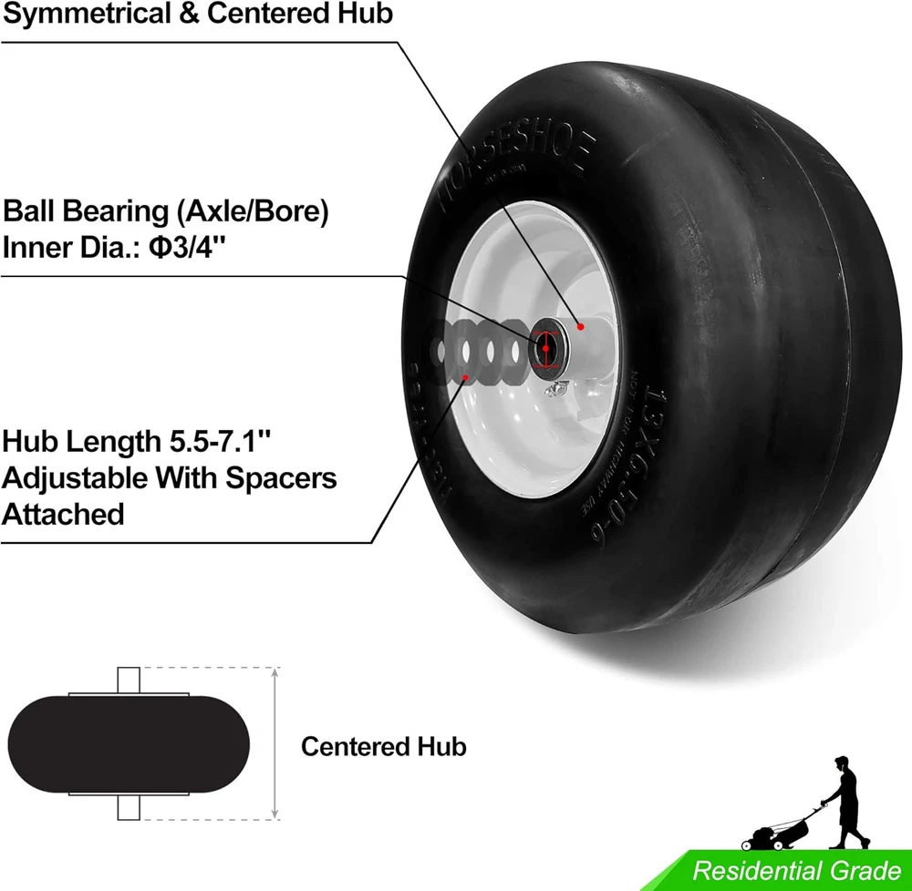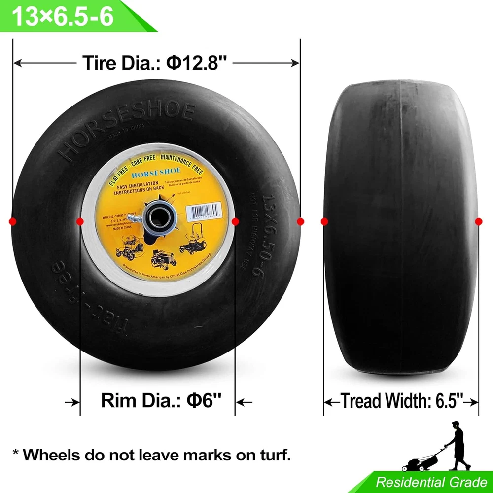 Store New Arrivals Add to Favorite View Feedback Contact (2-Pcs-Set) New 13X6.50-6 Flat-Free Smooth Tires W/Steel Rim for Lawn Mower Garden Tractor - Hub Length 5.5"-7.1" with 3/4" Precision Ball Bearing 136506 T161 Description Rim Size 6 Inches Wheel Size 12.8 Inches Exterior Finish Alloy Steel Material Polyurethane Color Black Item Diameter 13 Inches Vehicle Service Type Passenger Car Item Weight 20.7 pounds Pitch Circle Diameter 13 Inches Size Bore 5/8", Hub 5.5-7.1" Tread Depth 0.75 Inches Two (2) Commercial-grade solid polyuruthane 13X6.50-6 tires for lawn mowers and tractors, golf carts, hand trucks, generators, air compressors, wheelbarrows, wagons, car washers, etc. Dimensions: tire diameter: 12.8"; tire width: 6.2"; rim diameter: 6"; hub length 5.5-7.1" (adjustable); axle: 3/4" (ball bearing). Before ordering, please confirm all dimensions (tire size, hub length and axle) and grades on your device. Maintenance-free: no need to check air pressure, add air, or fix tire puncture. Lightweight heavy-duty tire with the bounce of a pneumatic tire and the reliability and durability of a solid tire. Wheels do not leave marks on turf. Suitable for golf carts. Product Description HORSESHOE Lawn Mower Tire & Wheel Orders Shipping to the Lower 48 States from HORSESHOE Nationwide Warehouses 95% HORSESHOE Lawn Mower Tire/Wheel Orders Fast Delivery Within 2 Working Days Delivery Days: 95% of Continental 48 States Large-Oversize Orders Delivery Within 2 Business Days ON-TIME Shipping Out Rate: 99.7% Within 1 Business Day Ship From HORSESHOE Nationwide Distribution Center and Warehouse: California Warehouse: Fontana, CA 92337 Texas Warehouse: Pasadena, TX 77503 Pennsylvania Warehouse: Bethlehem, PA 18020 New York Warehouse: Altamont, NY 12009 Florida Warehouse: Orlando, FL 32806 South Carolina Warehouse: Gaston, SC 29053 Kansas Warehouse: Edgerton, KS 66021 Washington Warehouse: Sumner, WA 98390 Wisconsin Warehouse: Richfield, WI 53076 Nevada Warehouse: Las Vegas, NV 89102 *Please be aware that HORSESHOE lawn mower tire/wheel are packed in original factory package so PO Box may cannot receive delivery items, please DO NOT fill in PO Box address on when you place purchase order. About HORSESHOE Brand >>Step By Step Growing & Up Day By Day! While our foundation dates back to the 1990s in China and started its On/Off-The-Road tire business in 2003. for almost 20 years we have successfully focused on specialist segments such as heavy duty agricultural, lawn garden, construction, commercial and industrial tires applications via advanced manufacturing technology and machinery. >>Tires and Wheels are our business... >HORSESHOE For Agriculture Reliable tires to get the most out of your advanced farming equipment; >HORSESHOE For Lawn Garden Pneumatic (Air-Filled) & Solid (Flat-Free) lawn and garden tires suitable for mowers, small tractors and garden equipment; >HORSESHOE For Off-The-Road Heavy duty solution tires to suit specific needs of the toughest sectors on earth! HORSESHOE - A PROSPEROUS BRAND FOCUS ON FLAT FREE TIRE AND WHEEL ASSEMBLIY! HORSESHOE is a thriving brand which has been committed to meeting customer needs with heavy-duty Off-The-Road tire & wheel Assembly. Our manufacturers have obtained such certification as US DOT(2000), EU ECE(2006), Middle East SASO. The testing center has passed the CNAS (2017), German TÜV (2018) to ensure that all of our products are manufactured with the same quality standards. ABOUT US We offer the best prices around on high quality products. Our E-store includes media such as books, movies, music and games while offering electronics, toys, sporting apparel, clothing, tools, general home, garden items and more. SHIPPING We are always working hard to ensure your package arrives as soon as possible. Please understand that some factors like weather, high postal traffic, and the performance of shipping companies are outside of our control. We offer free shipping to the lower 48 states and ship within 2 business days of payment, usually sooner. We do not accept P.O. Boxes. Please provide a physical address. For shipping outside of the continental USA, we only use eBay's Global Shipping Program.The item is shipped to KY and then sent to the rest of the world. International customers are responsible for all duties and taxes. Continue to check out in order to calculate costs for shipping the item to your country. Messages regarding eBay's Global Shipping Program MUST be directed at eBay EXCLUSIVELY. RETURNS We offer a 30-Day Return Policy on items which you are not completely satisfied with. You have the option for a full-refund or an exchange of the item. No returns are available on items shipped outside of the USA. PAYMENT We accept PayPal. CONTACT US This page content is yet to come Please ad us to your favorite seller and visit again later Thank You CUSTOMER SATISFACTION We try our very best to make sure every customer is completely satisfied. If there's a problem, message us! We're happy to help. WE ACCEPT Copyright © 2021 AutoDS. | All Rights Reserved