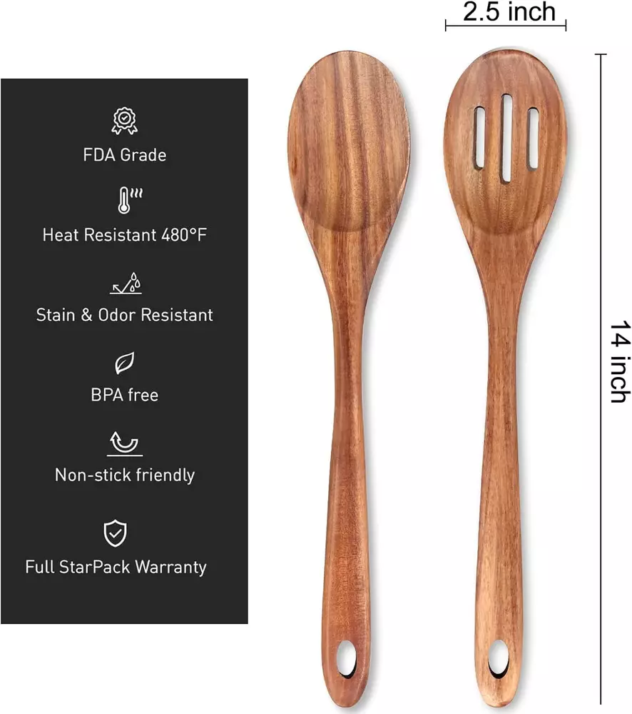 Store New Arrivals Add to Favorite View Feedback Contact 2-Piece 14 Inch Large Wooden Spoon Set Slotted Spoon with Hole and Non-Stick Description Item model number cooking spoon Style spoon+slotted spoon Handle Width 2.5 Inches Color Natural Product Dimensions 14"L x 2.5"W Material Wood Country of Origin China Is Dishwasher Safe No Item Weight 9.1 ounces Material Type Free Plastic Free Number of Pieces 2 Brand Renawe Manufacturer Renawe Spoon set Includes: 14 inch long handle Spoon and 14 inch big Slotted Spoon. Good size, work great. Made of luxury one-piece TEAK WOOD, Very sturdy, food-safe, non-toxic. last a lifetime. Much better than cheap bamboo spoons and silicone spoons. LONGER than other cooking spoons, our 14" spoons are large, comfortable to grip, attractive and the different styles fit a variety of needs while cooking. Great for nonstick pans. Wooden spoons won’t scratch your pots and pans. The finish is smooth. Easy to clean, but hand wash only. Product Description For connect lifestyle with natural & food safe, Renawe focus on made best wood products by bring innovative designs and craftsmanship together. Hope you become wood fanatics and bring natural warmth into your home! Provides exceptionally valued items for your kitchen. Love these EXTRA LONG cooking spoons Great for everyday use! Excellent spoons for anyone. Made of luxury one-piece TEAK WOOD, Very sturdy, food-safe, non-toxic. last a lifetime. These wooden cooking spoons will protect your non stick surfaces from scratches. The slotted spoon will allow you to gather foods when you don't want the liquid. The wood spoon is perfect for stirring and tasting any concoction. Great wooden utensils! Best Gift! These 14 inch extra long mixing spoons are perfect for the many tasks in the kitchen! Very nice stirring spoons, very comfortable in the hand with very high quality finishing. Use them daily, and would certainly recommend them to others. How to Care Wooden Spoons Hand wash with a mild soap and cool water. Do not soak. Do not put in the dishwasher, microwave or refrigerator. Dry thoroughly. Dry them immediately with a dish towel. Occasional use of mineral oil on the inside will help maintain its appearance. ABOUT US We offer the best prices around on high quality products. Our E-store includes media such as books, movies, music and games while offering electronics, toys, sporting apparel, clothing, tools, general home, garden items and more. SHIPPING We are always working hard to ensure your package arrives as soon as possible. Please understand that some factors like weather, high postal traffic, and the performance of shipping companies are outside of our control. We offer free shipping to the lower 48 states and ship within 2 business days of payment, usually sooner. We do not accept P.O. Boxes. Please provide a physical address. RETURNS We offer a 30-Day Return Policy on items which you are not completely satisfied with. You have the option for a full-refund or an exchange of the item. No returns are available on items shipped outside of the USA. PAYMENT We accept PayPal. CONTACT US This page content is yet to come Please ad us to your favorite seller and visit again later Thank You CUSTOMER SATISFACTION We try our very best to make sure every customer is completely satisfied. If there's a problem, message us! We're happy to help.