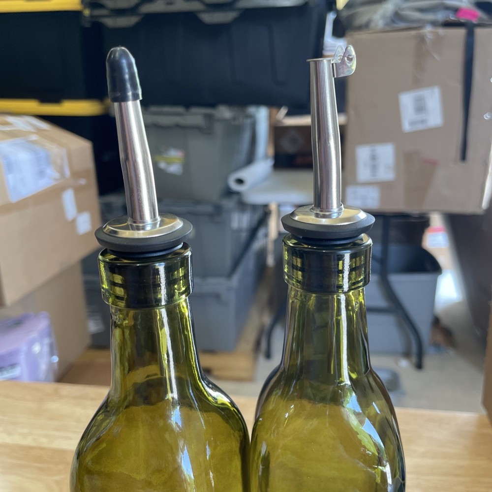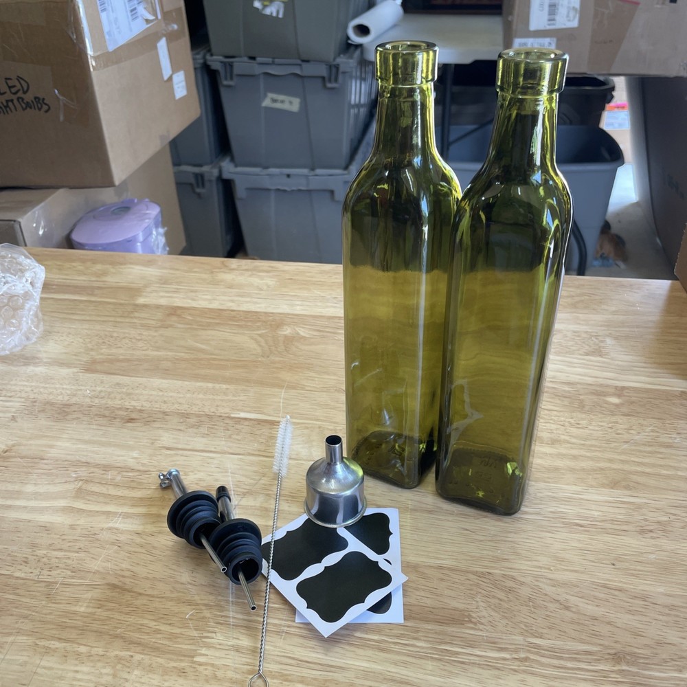 2 Pcs Green Glass Oil Bottle for Kitchen Oil and Vinegar Dispenser Set ( 17oz ). Shipped with USPS Ground Advantage.