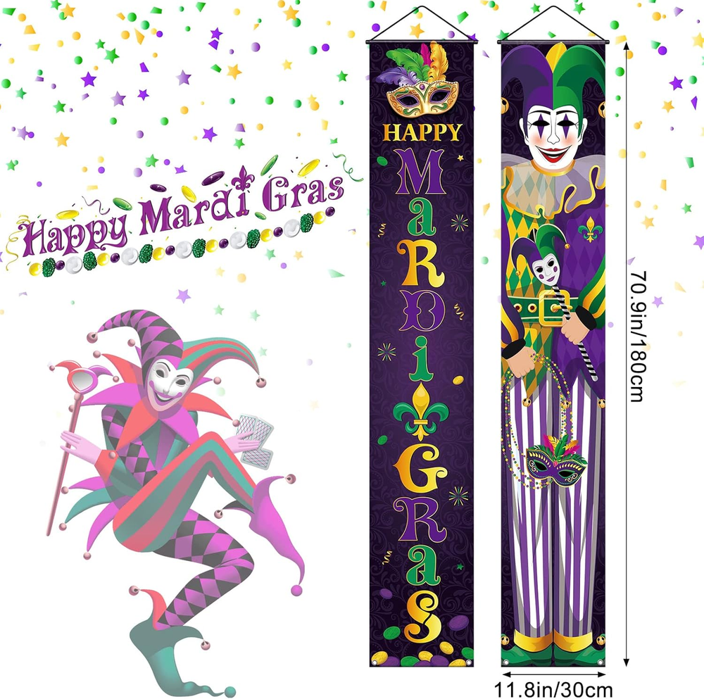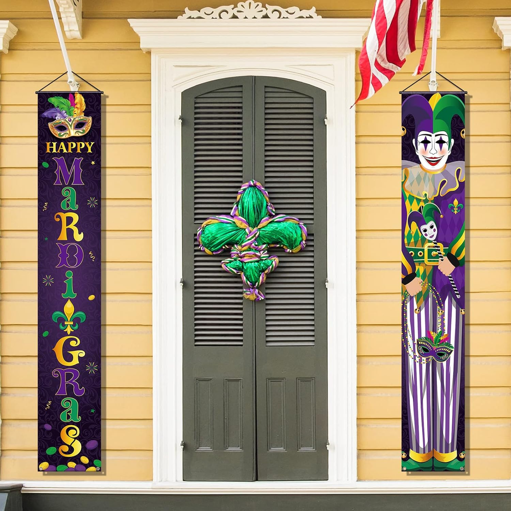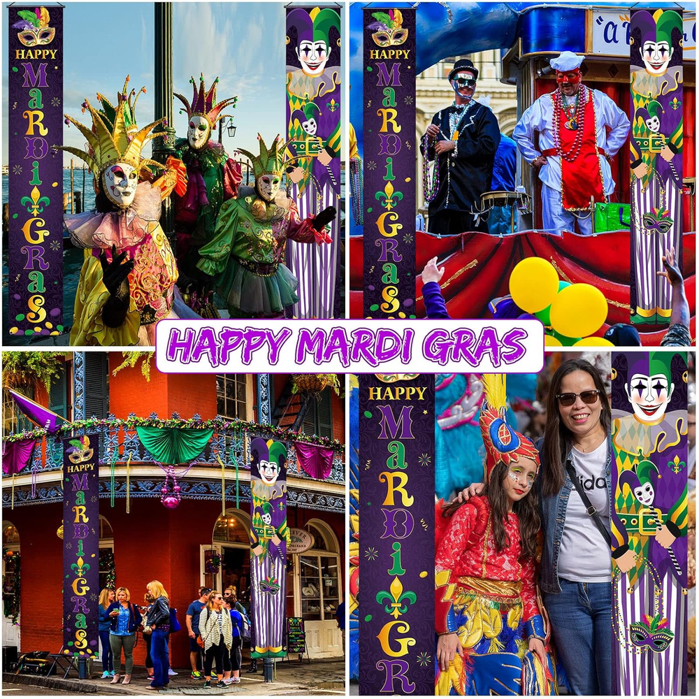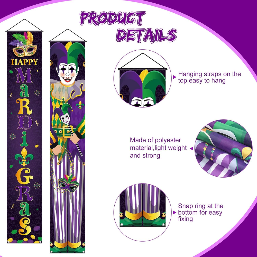 Store New Arrivals Add to Favorite View Feedback Contact Fast deliveries to the customer's home Quality customer service John Make the customers happy! 2 Pieces Mardi Gras Porch Sign Mardi Gras Banner Mardi Gras Party Hanging Door Banner Mardi Gras Porch Banner Mardi Gras Decoration Mardi Gras Front Door Banner for Carnival Masquerade Party Supplies Description Quantity and Size: you will receive 2 pieces of Mardi Gras hanging banner from the package, the measured size is approx. 70.9 x 11.8 inches/ 180 x 30 cm; This height is very suitable to decorate your front door, add a happy festival charm to your house Reliable Material: the Mardi Gras door porch sign is made of oxford fabric, lightweight and portable, not easy to wrinkle, no deformation and no pilling, washing without fading; You can carry it around and use it for a long time Easy for Hanging: the Mardi Gras joker porch banner has a hanging strap at the top, it is strong and easy to hang; Whether you use panel nails, hooks, hangers or straps, you can easily install it anywhere you want Nice Design: the main color of the Mardi Gras outdoor decoration banner is purple, which is printed with words [Happy Mardi Gras] and a joker holding a mask; The large letters and vivid colors catch everyone's eyes easily Wide Application: the Mardi Gras party porch sign can be applied on both sides of the porch, indoor and outdoor walls, to decorate the party, school and home; You can also share them with your friends or colleagues during the holiday, which will create a completely festive atmosphere for you Product Description Item model number NS--513 Package Dimensions 13.35 x 3.19 x 0.83 inches Color Purple Product Dimensions 70.9"L x 11.8"W Material Oxford Fabric Specific Uses For Product Mardi Gras celebration Item Weight 6.4 ounces Theme Mardi Gras Recommended Uses For Product Party Occasion Mardi Gras Special Feature Fold, Lightweight, Fade Resistant Cartoon Character Joker ABOUT US We offer the best prices around on high quality products. Our E-store includes media such as books, movies, music and games while offering electronics, toys, sporting apparel, clothing, tools, general home, garden items and more. SHIPPING We are always working hard to ensure your package arrives as soon as possible. Please understand that some factors like weather, high postal traffic, and the performance of shipping companies are outside of our control. We offer free shipping to the lower 48 states and ship within 2 business days of payment, usually sooner. We do not accept P.O. Boxes. Please provide a physical address. For shipping outside of the continental USA, we only use eBay's Global Shipping Program. The item is shipped to KY and then sent to the rest of the world. International customers are responsible for all duties and taxes. Continue to 'check out' to calculate costs for shipping the item to your country. Messages regarding eBay's Global Shipping Program MUST be directed at eBay EXCLUSIVELY. RETURNS We offer a 30-Day Return Policy on items in which you are not completely satisfied with. You have the option of a full-refund or an exchange of the item. No returns are available on items shipped outside of the USA PAYMENT We accept PayPal. CONTACT US This page content is yet to come Please ad us to your favorite seller and visit again later Thank You CUSTOMER SATISFACTION We try our very best to make sure every customer is completely satisfied. If there's a problem, message us! We're happy to help. WE ACCEPT