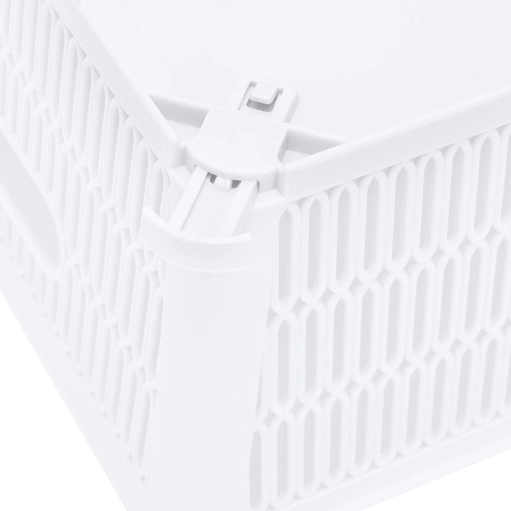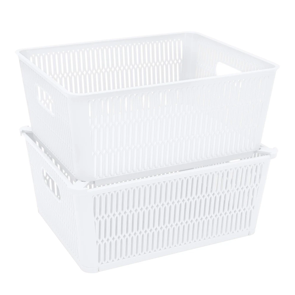 Maximize your storage space with the Slide 2 Stack It Storage Tote Baskets. Created with a patented slide to stack design which provides slide out corner support that allow the totes to be safely stackable. Storage totes hold up to 40lbs while stacked, allowing you to maximize your storage in closets, cabinets, shelves and more. The totes neatly nest inside when not in use. Organizing just became easier with the slide 2 stack it totes! Dimensions: 11"x 9"x 4.75" Patented Slide 2 Stack Design: The corners of each storage tote are designed with slide out support to allow totes to be stackable. This helps to maximize your storage space. Nestable: The totes nest easily inside each other when not in use for easy storage and will take up less space. Holds 40lbs: These baskets are strong and durable enough to hold up to 40 pounds when stacked. Multipurpose: These totes are perfect for your bathroom, kitchen, bedroom, and more. You can easily towels, soaps, lotions in it. Or you can use them to organize your craft room.