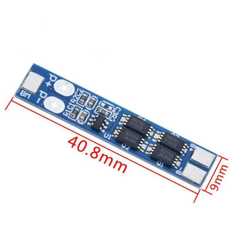2S 7.4V 8A Li-ion 18650 Lithium Battery Charger Protection Board 8.4V Overcurrent Overcharge / Overdischarge Protection Properties of the lithium battery protection board: Model: HX - 2S - A10 Size: 41 * 8 * 2.2 mm Maximum working current: 8 a Maximum instantaneous current: 16 a Static current: less than 10uA Resistance: less than 300 m Ω Charging voltage: 8.4 v-9v Overcharging range: 4.25-4.35 v plus or minus 0.05 v Over voltage range: 2.5-3.0 v plus or minus 0.05 v Working temperature: - 40 - + 50 ℃ Storage conditions: - 40 - + 80 ℃ Effective life: more than 50,000 hours Short circuit protection: to protect and restore must charge The protection board size and device description; The protective plate size is 41 * 8 * 2.2 mm Welding point description: · B + battery anode; · B - connect battery negative terminal; · MMB connect battery 1 to battery 2; · P + charging/discharge correct poles (charging end/discharge end sharing); · P - charging/discharge terminal negative terminal (charging end/discharge end sharing). Package Includes: 1pcs x 2S 7.4V 8A Li-ion 18650 Lithium Battery Charger Protection Board