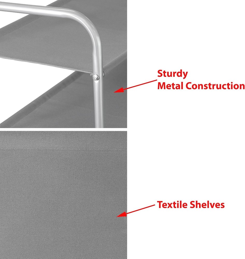 Stores up to 12-15 pairs of shoes, Additional bottom storage for slippers. Sturdy metal construction with washable 600 D polyester fabric, each shelf holding up to 30 lbs. Easy Assembly Personalized Storage: You can remove the panel to build into a 2-tier or 3-tier shoe rack to fit different kind of shoes. Great solution to keep your entryway, closet, dormitory, patio, mudroom and garage away from mess. Product Dimension: 11.2''D x 26.8''W x 15.1''H