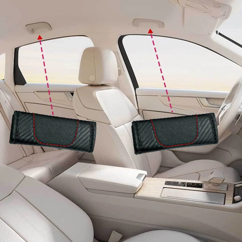 2X Car Roof Pull Gloves Cover Handrail Armrest Handle Protector Auto Accessories Description: Material: Carbon fiber pattern Color: Black Product Name: Car Roof Pull Gloves Size:12cm*5cm. Features: 1. Brand New design, creative product to decor your car interior. 2. Protect original car, keep your car always be a NEW car. 3. Carbon fiber pattern material, soft and comfortable. 4. Easy to install and easy to clean. Package: 2Pcs Car Roof Pull Gloves