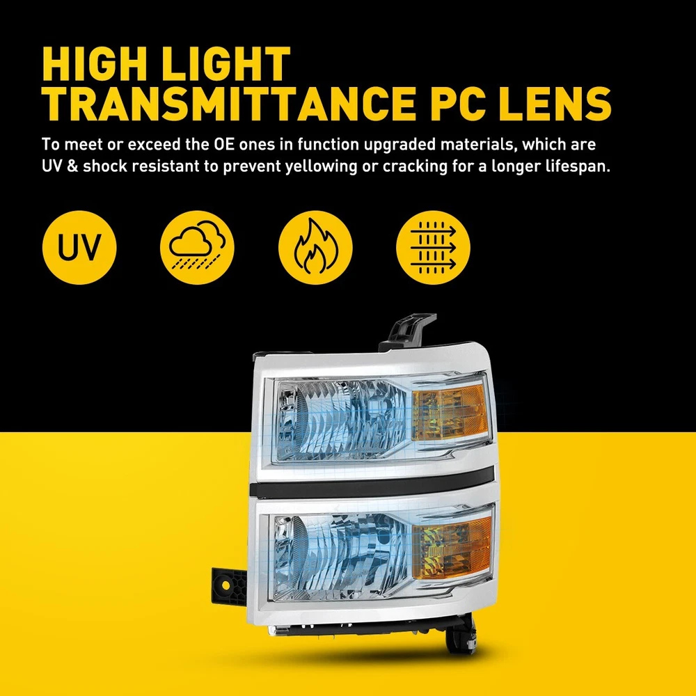 Fit for: 2014-2015 Chevy Silverado 1500 Models Only (Fit 2014 New Body Style Models Only; Does NOT Fit HD Models) Specifications: OE number: 20933724, 20933725, 20933722, 20933723, 23172782, 23172783 GM2502389, GM2503389, GM2502395, GM2503395, GM2502410 Material: ABS+PC (ABS Plastic Housing/Polycarbonate lens) Appearance color: 1.Housing Color: Chrome 2.Lens Color: Clear 3.Reflector Color: Amber Note: Projector × (Not include) DRL × ( Not Include) Bulb × (Not include) 2X Front Headlights for Chevy 2014-2015 Silverado 1500 Chrome Housing Head EXA Fit for: 2014-2015 Chevy Silverado 1500 Models Only (Fit 2014 New Body Style Models Only; Does NOT Fit HD Models) Specifications: OE number: 20933724, 20933725, 20933722, 20933723, 23172782, 23172783 GM2502389, GM2503389, GM2502395, GM2503395, GM2502410 Material: ABS+PC (ABS Plastic Housing/Polycarbonate lens) Appearance color: 1.Housing Color: Chrome 2.Lens Color: Clear 3.Reflector Color: Amber Note: Projector × (Not include) DRL × ( Not Include) Bulb × (Not include) Features: *Easy to install: Direct replacement, drilling and cutting are not required. *Superior quality: Made of ABS and PC materials with toughness and heat resistance functions to ensure its long service life and durability. *Angle adjustment: Equipped with a headlamp Angle adjustment knob, you can adjust the best Angle of view through the knob. Suggestion: 1.Please confirm the OE number before purchasing!!! 2.Professional installation is required!!! Package Included: Headlights *2 (Left+Right) Item Specifics Brand AUXITO Number of Pieces 2 Type Headlight Assembly Placement on Vehicle Front,Left,Right OE/OEM Part Number 20933724, 20933725, 20933722, 20933723, 23172782, 23172783 Fitment for 2014-2015 Chevy Silverado 1500 Models Only Attention Fit 2014 New Body Style Models Only; Does NOT Fit HD Models Manufacturer Warranty 1 Year Universal Fitment No Interchange Part Number GM2502389, GM2503389, GM2502395, GM2503395, GM2502410 Fitment Type Direct Replacement OE/OEM Part Number 20933724, 20933725, 20933722, 20933723, 23172782, 23172783 Fitment for 2014-2015 Chevy Silverado 1500 Models Only Attention Fit 2014 New Body Style Models Only; Does NOT Fit HD Models Manufacturer Warranty 1 Year Universal Fitment No Interchange Part Number GM2502389, GM2503389, GM2502395, GM2503395, GM2502410 Fitment Type Direct Replacement Payment We only accept PayPal payment, should be received within 3 days from the date of purchase. Please keep the consistency of Paypal address and ebay address. Payment should be made within 4 days once you won a item ,or ebay will launch Unpaid Reminder agaist you and there will be bad record on your ebay account . Buyers are responsible for import duties, custom fees and taxes.Please check with your country's custom office to determine the additional costs before you finally make the purchase Shipping All items will be shipped in 48 hours after receiving your payment . We ship this item to US only via USPS first class mail. It usually takes 3-6 working days to deliver. Returns We offer 30 days return policy. Please contact us within 30 days t from the date you receive your order if you have any issues with the product or want return .Refund will be send after we got your resend package. All returned items should be in the original packaging , return tracking information should be provided .. Buyer is responsible for return shipping cost due to the problem not caused by item quality itself . Contact Us Our office hours are MONDAY - FRIDAY 9:00PM - 6:00PM PST, but we will response you once we get your message .There will be some delay on response if you send message or E-Mail on weekend. FAQ Q1: Will this bulb fit my vehicle? A: We can match almost any vehicle to one of our bulb sizes. eBay only lets us include partial vehicle fitments per listing, but if your vehicle does not show up on the compatibility table at the top of our listings, welcome you to contact us for free consulation before purchasing a product. Q2: My item has not arrived, what's taking so long? A: Sometimes items take longer than expected, especially if it’s going far or to rural area. Check with your post office to see if your item has been held up. Sometimes USPS will not update a tracking number until it has arrived at its destination. If your item still has not arrived after a few days, let us know so we can double check for you and help solve it asap. Q3: Do I need to mention the Year, Make and Model in the notes when place order? A: YES. Please include the Year, Make, and Model in the notes section during checkout to ensure you receive everything needed for your kit! Q4: My bulbs won't fit, help! A: Special bulb holder may be required. See if you can take the holder from the stock bulb. If not, let us know. The bulb size may be wrong, double check the item you received with the item you ordered. Do you have an aftermarket lighting housing? These may not be perfectly fitted for aftermarket bulbs and will require some manual modifications. Q5: Neither side lighting up? Both sides flicker, flash, or work inconsistantly. A:Check the headlight fuses, and then check the ballast plugs to insure correct installation. If this doesn't work, there may be a voltage problem with the vehicle. You probably just need a relay or capacitor. Q6: WARNING ABOUT POLARITY Unlike halogen bulbs, LED are polarity sensitive. BEFORE you start your LED kit installation, verify the polarity on your vehicle by simply plugging the LED bulb into your vehicle socket. - if your light turns on, please proceed to install both bulbs onto your vehicle. - if your light DOES NOT turn on, disconnect the bulb and flip the socket in order to reverse the polarity (this will not damage your vehicle electrical system in any way). Once you made sure the LED bulb turns on, please proceed to install both bulbs onto your vehicle. Note: There is no convention when it comes to polarity. Different car manufactures have different polarity 