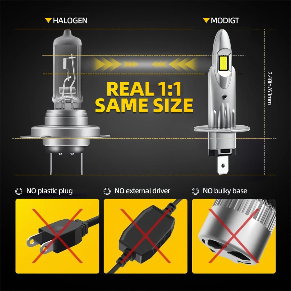 Specification: Type: Light Bulb LED Chips: CSP Color Temperature: 6000K Color: White Suitable For: High Beam, Low Beam, Headlight Lumens: 20000LM/a pair bulb Voltage: DC 9V - 32V ( Fit 12V 24V Vehicle ) Wattage: 25W Number of Bulbs: 2 Waterproof: IP68 Placement on Vehicle: Front, Left, Right Fitment Type: Direct Replacement OE/OEM Part Number: H1 Bulb Life Hours: Up to 50,000 Hours Features1: Copper plate heat dissipation+aluminum shell heat dissipation Features2: CANbus compatible Packaging includes: 2X H1 LED Headlight Features: 1shengmei Best choice of motor parts 2X H1 LED Headlight Bulbs Kit 25W 20000LM High/Low Beam Super Bright White US Specification: Type: Light Bulb LED Chips: CSP Color Temperature: 6000K Color: White Suitable For: High Beam, Low Beam, Headlight Lumens: 20000LM/a pair bulb Voltage: DC 9V - 32V ( Fit 12V 24V Vehicle ) Wattage: 25W Number of Bulbs: 2 Waterproof: IP68 Placement on Vehicle: Front, Left, Right Fitment Type: Direct Replacement OE/OEM Part Number: H1 Bulb Life Hours: Up to 50,000 Hours Features1: Copper plate heat dissipation+aluminum shell heat dissipation Features2: CANbus compatible Packaging includes: 2X H1 LED Headlight Features: 1. Good light type , Low power consumption and super bright lighting,the position of the light-emitting point is close to the original car halogen lamp 2. No delay to light up , Faster on/off response time, low power consumption and high lighting,Good Quality And Durable,Easy to Install,Good Feel 3. Lifespan: Up to 50,000 hours working hours ,Adopt imported chips emit 360 degree light can light up every corner, stable quality, long service life. 4.The model is as the same as factory light, no need to change car wire rute,just Plug and Play , NO modification required A direct replacement part that easy to install. 5.With High-purity brightness , strong penetrability and superior stability,Energy saving, environmental protection, through strict test, Use safer driving in the car,highly recommended. 6.Efficient Cooling System: Copper plate heat dissipation+aluminum shell heat dissipation .LC plus comes with a copper base board, cold pressed aluminum heat sink . Better solve the dimming or over heated of led bulbs. 7. CAN-bus ready design: Making led bulbs error free for 99% of vehicles’ system, upgraded driver with built-in intelligent IC and temperature control ensures lamps working at the best status without error or radio interference. 8. CSP Chips, Brightness Improved , MGT H1 led beam bulb is designed with CSP 3055 chips, 6000K cool white, about 2 times brighter than stock halogen bulbs allowing you to see more clearly and farther on the road, improve visibility at night. Advantages of Copper Substrate: 1. The copper substrate itself has strong thermal conductivity and good heat dissipation. 2. structure: Contact the lamp beads with zero thermal resistance, reduce the weak light of the lamp beads, and maximize the lifespan of the lamp beads. 3. High density: smaller volume at the same power. 4. Paired with a single high-power lamp bead, especially CSP packaging, the lamp can achieve better results. Install Caution: 1. As a safety precaution, make sure that the car has had time to cool down properly before starting the installation process. 2.Put the vehicle into park or make sure it is securely in gear. 3.Make sure to have the ignition turned off and the keys removed. 4. Be careful to avoid burns, especially when turning on or off the vehicles lighting. 5. Be careful to avoid crushing or cutting the bulbs. Also make sure to not touch the bulbs with your fingers, as this will cause blotting. 6. Fully examine the connection of the contact points, ports and the wires as faulty connections can cause lighting problems. 7. Make certain that the end of the bulb does not come in contact with the interior light shield of the headlight when adjusting the bulb. Notes: 1.Compatible mentioned can not show up all Car model. Please check the Correct bulb size of your vechicle. it will work and fit.Thank you! 2.Professional installation is highly recommended if you have any difficult in installation. Item Specifics Brand MGT Lighting Technology LED Suitable For Headlight, High Beam, Low Beam Bulb Fitment Code H1 Number of Bulbs 2 Light Color White Type Light Bulb Operating Temperature -40-80 degree Celsius Manufacturer Part Number H1 OE/OEM Part Number H1 Color Temperature 6000K Wattage 25W Voltage DC 9V - 32V ( Fit 12V 24V Vehicle ) Lumens 20000LM/a pair bulb Waterproof IP68 Headlight Bulb Type H1 Sealed Housing Dustproof and Waterproof Lighting Type Specialty Head Light Bulb Manufacturer Warranty 2 Years Bulb Life Hours Up to 50,000 Hours Interchange Part Number H1 Model H1 2-Sides Super Bright LED Bulbs Conversion Kit Superseded Part Number Headlight High Beam Low Beam LED Conversion Kit Fitment Type Direct Replacement Features 1 LED Light Features 2 CSP 3055 Chips, Brightness Improved Features 3 Perfect Beam, No Dark Spots Features 4 Copper plate heat dissipation,aluminum shell heat dissipation Features 5 CANbus compatible Package Includes 2X H1 LED Headlight Payment 1. It will be much appreciated that you finish your payment asap or it will make UPI (unpaid item case) on your account leading to be suspended or restricted by eBay when those UPI cases carry over to certain amount. 2. Any problems please contact us for more details. Shipping 1. All items will be shipped to buyer's ebay address. 2. All items will be shipped within 24-48 working hours upon receipt of payment, and multiple items will be combined shipping. 3. In most cases, delivery takes around 3-5 business days, it's highly depended on the efficiency of the shpping carrier. If your item doesn't arrive on time, please contact us immediately for further assistance. Please note there is no local pickup service available. Returns If you are not 100% satisfied with your purchase, you can return the product and get a full refund or exchange the product for another one. Ple