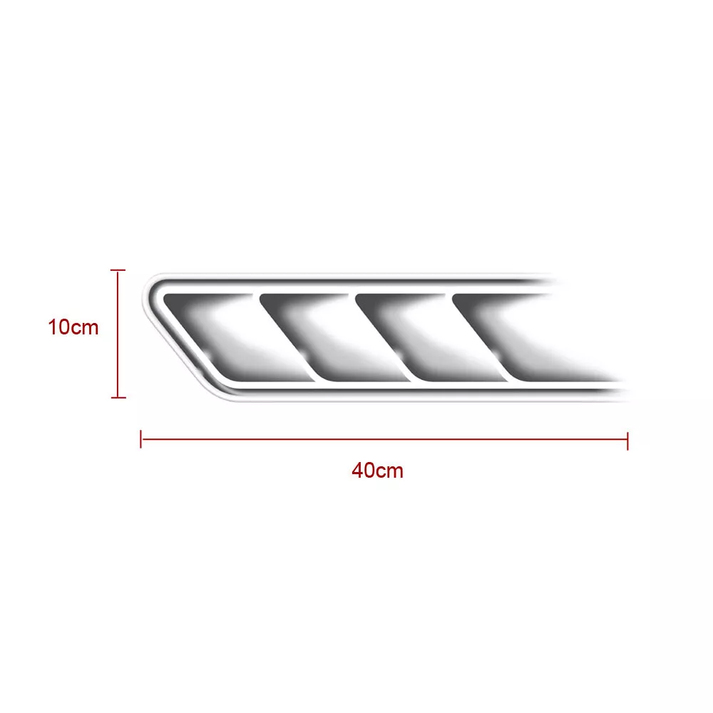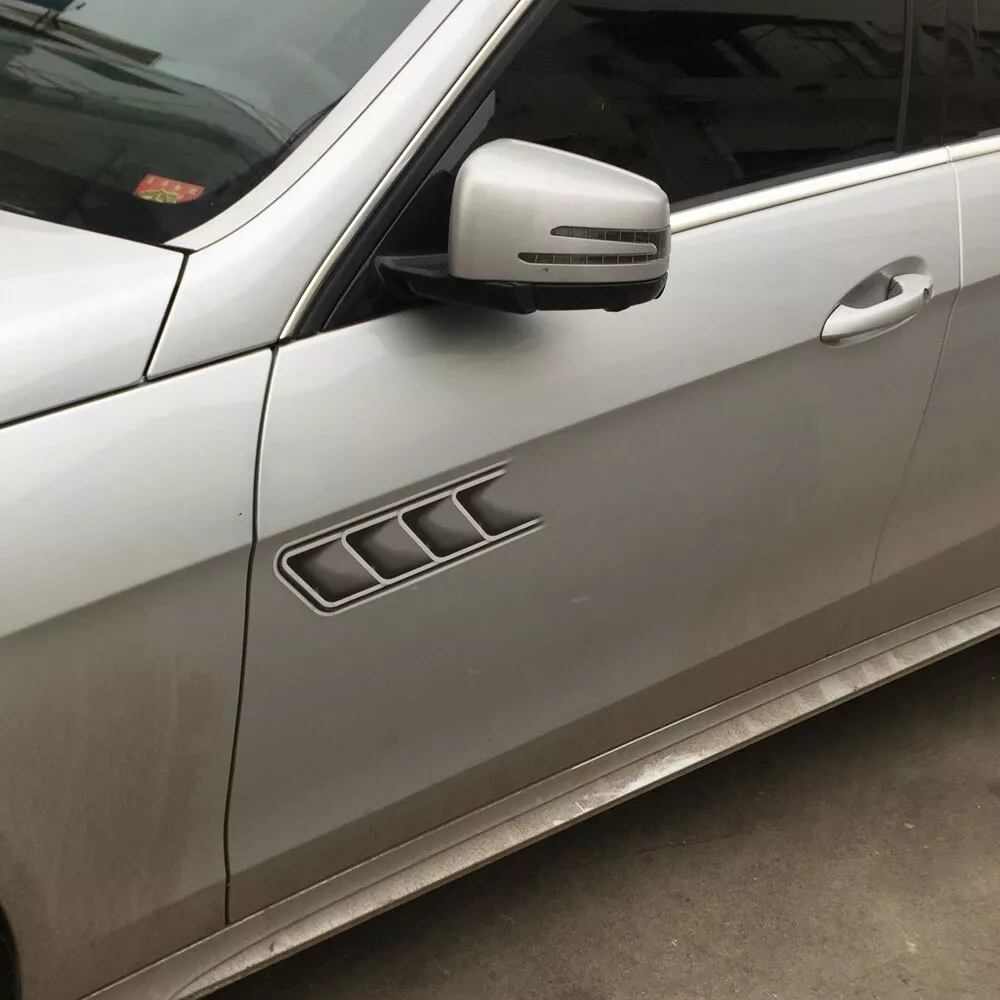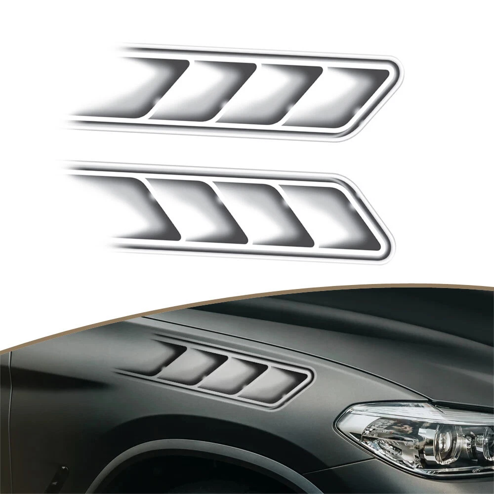 Features: • Easy Installation: Comes with adhesive backing, simply peel and stick. • Elegant and Simple: Perfect fit that does not damage your car paint and can cover scratches. • Durable Material: Does not fade, oxidize, and has high simulation quality. • Personalized De coration: A dds a unique touch to your car. Universally fits most car models. Installation Instructions: 1. Remove the item from the package. 2. Test fit the trim on the designated area. 3. Clean the application area th oroughly before installation. 4. Remove the tape cover, place the tr im in the desired location, and press firmly to ensure proper adhesion. 5. Avoid washing the car for 24 hours after installation. Package included: 1 Pair of Air Flow Fender Side Vent Decoration Sticker