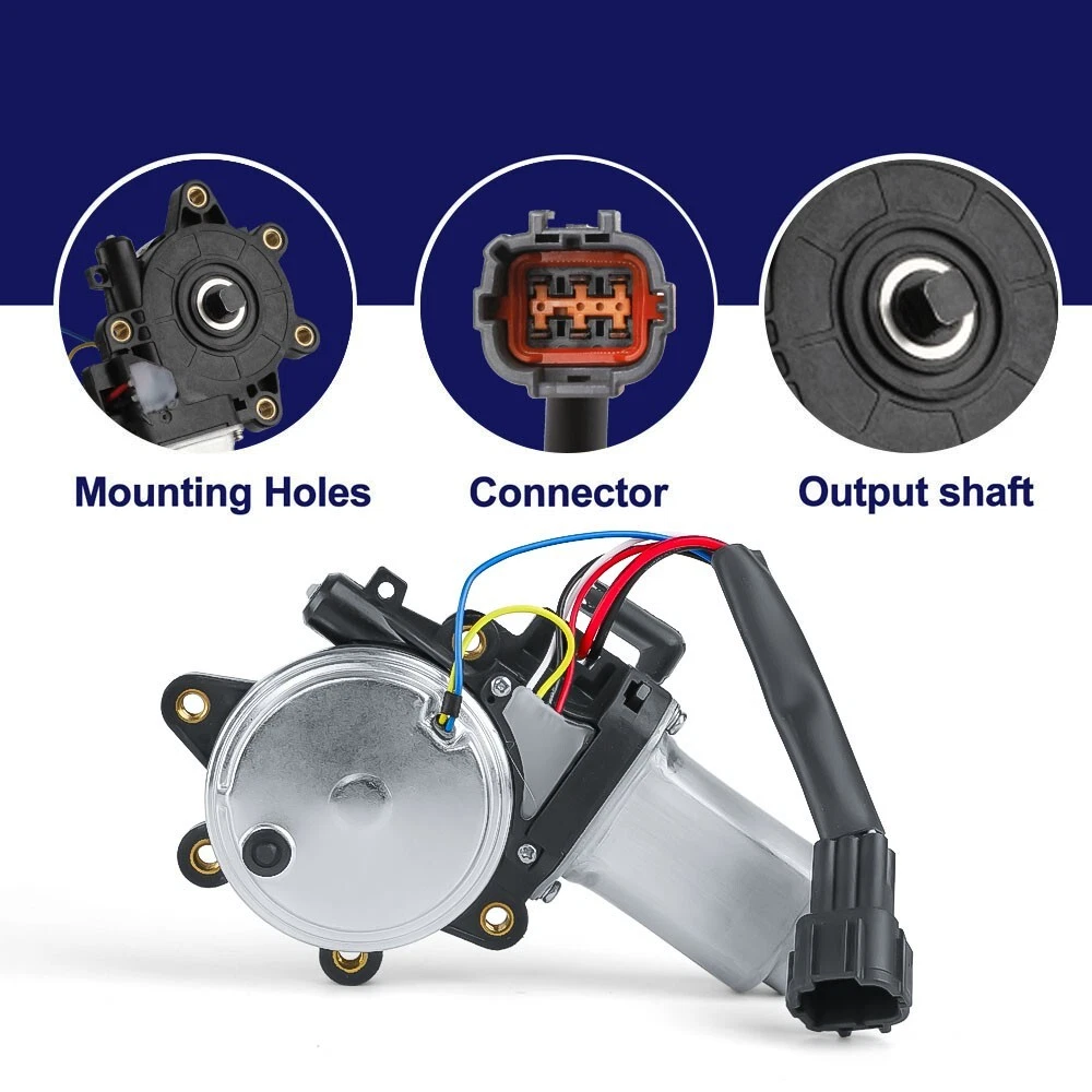 Voltage:12VMounting Type:M6 Threaded HoleSuperseded Part Number:80730-ZP80A, 80731-EA500Anti-Clip Function Included:with Anti-clipPlacement on Vehicle:Front Left, Front RightBrand:DCKING MOTOROther Part Number2:80730-ZP80A,80731-EA500Type:Window MotorOutput shaft:10*10 square shaftShaft Included:YesWindow Motor Use Location:Front Right Passenger SideApplicable Regions:Window Motors & PartsMount Hole Quantity:5Model:PathfinderWire Quantity:6Fitment Type:Direct ReplacementRegulator Included:NoOther Part Number3:471391,47-1391,821391,82-1391,742529,742-529Interchange Part Number:82-1390, 82-1391Terminal Quantity:6-pin plugYear:2007-2012Manufacturer Warranty:1-year unlimited-mileage warrantyOther Part Number1:471390,47-1390,821390,82-1390,742530,742-530Manufacturer Part Number:47-1390, 742-530, 47-1391, 742-529OE/OEM Part Number:80730ZP80A, 80731EA500Compatible Makes:Nissan
