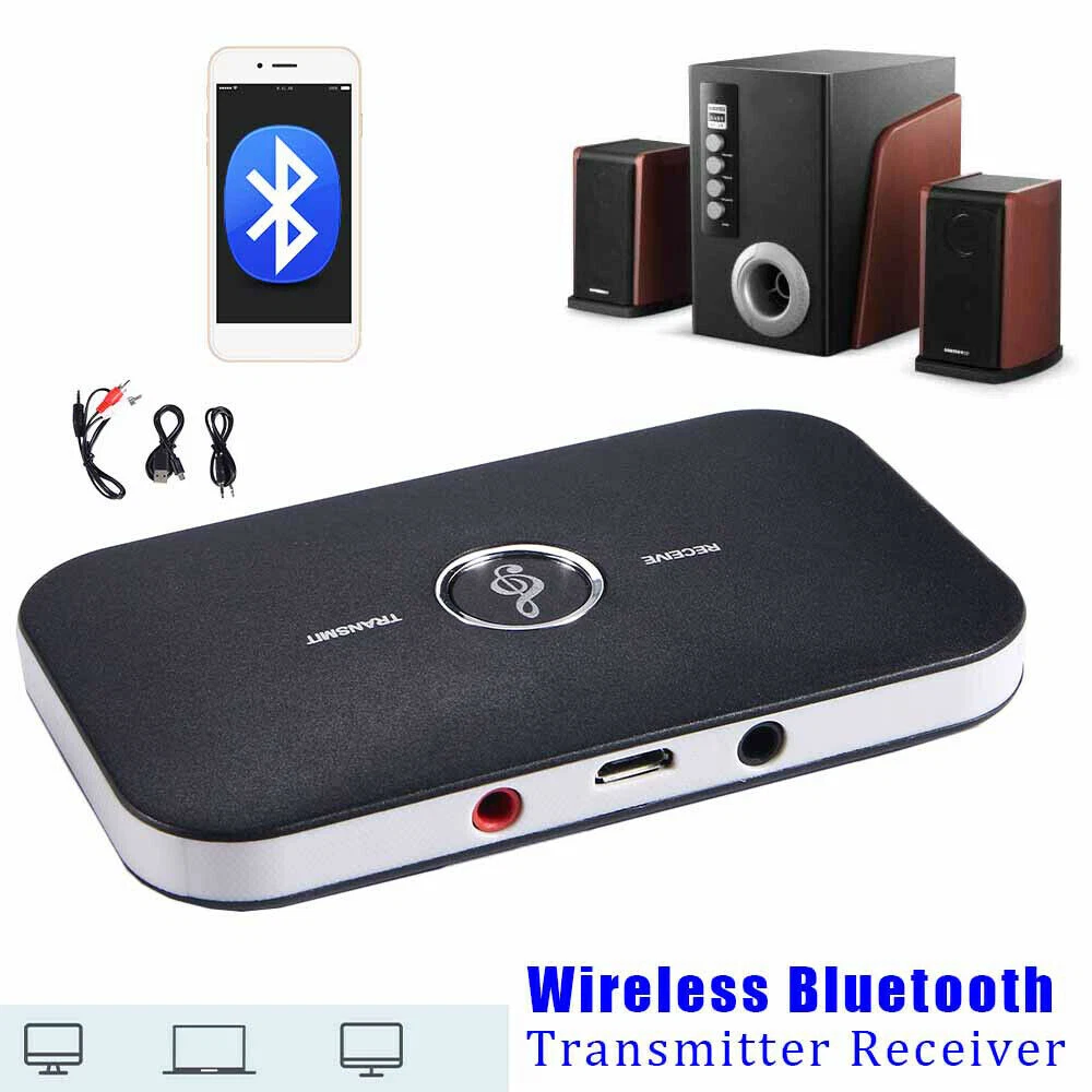 2in1 Bluetooth Transmitter & Receiver Wireless A2DP Home TV Stereo Audio Adapter Specification: Model number: B6 Bluetooth: V4.1 Transmission Distance: 10m / 33ft Battery: Built-in Rechargeable Li-polymer battery(600mAh) Working Time: 8 Hours (depend on audio volume) Charging: Micro USB 5V/0.5A Audio Port: 3.5mm Color: Black Main Item Size: 9.7 * 5.8 * 1.2cm / 3.82 * 2.28 * 0.47in Main Item Weight: 38g / 1.36oz Package size: 12.5 * 7.0 * 3.6cm / 4.92 * 2.76 * 1.42in Package weight: 116g / 4.09oz Package List: 1x 2 in 1 Bluetooth Audio Transmitter & Receiver 1x 3.5mm Audio Cable 1x AV Cable 1x USB Charging Cable 1x English User Manual Features: [Receiver Mode] B6 Bluetooth Receiver change the traditional speakers into Bluetooth-enabled ones. After paired, play music wirelessly from your Bluetooth-enabled Smart Phones, Laptop, Tablet and more without the hassle of cables. Support Automatic Re-connection. [Transmitter Mode] B6 Bluetooth Transmitter is specially designed for the Audio Devices (such as MP3, MP4, TV and PC, etc.) without Bluetooth function. You can connect the Bluetooth Transmitter to the audio devices via the included 3.5mm Audio Plug, changing these audio devices into Bluetooth-enabled audio devices, and making it work with Bluetooth-enabled Headset and Speaker. [ANC Noise Reduction & AEC Echo Cancellation] Support Noise Suppression and Echo Cancellation, offering you Magnificent Stereo Sound & Wonderful Sound Quality. [Strong Compatibility] Compatible with Android & IOS smart phones and PAD, almost all Bluetooth-enable Audio Devices, and Stereo System with 3.5mm port. [Low Power Consumption] Built-in 600mAh Battery ensures up to 8 hours working time, you can enjoy wireless free all day long. Simple use, no need to download any APP. 2 in 1 Bluetooth Transmitter & Receiver, as a Bluetooth Audio Transmitter, B6 is specially designed for the Audio Devices (such as MP3, MP4, TV and PC, etc.) without Bluetooth function. You can connect the Bluetooth Transmitter to the audio devices without Bluetooth function via the included 3.5mm Audio Plug, changing these audio devices into Bluetooth-enabled audio devices, and making it work with Bluetooth-enabled Headset and Speaker; as a Bluetooth Audio Receiver, B6 is specially designed for Car Stereo systems and Home Audio System. It can change the traditional Car Stereo systems and Home Audio System into Bluetooth-enabled ones, and easy to pair with Bluetooth-enabled Smart Phones, laptop, tablet, etc. With this product, you can greatly enjoy music from your phone, laptop, tablet without the hassle of cables. B6 2 in 1 Bluetooth Transmitter & Receiver will give you much fun and convenience.