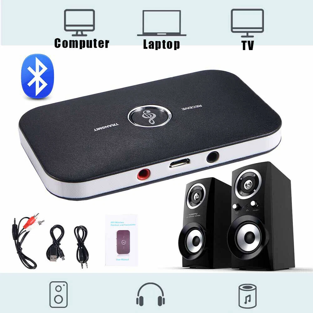 2in1 Bluetooth Transmitter + Receiver Wireless A2DP Home TV Stereo Audio Adapter Specification: Model number: B6 Bluetooth: V4.1 Transmission Distance: 10m / 33ft Battery: Built-in Rechargeable Li-polymer battery(600mAh) Working Time: 8 Hours (depend on audio volume) Charging: Micro USB 5V/0.5A Audio Port: 3.5mm Color: Black Main Item Size: 9.7 * 5.8 * 1.2cm / 3.82 * 2.28 * 0.47in Main Item Weight: 38g / 1.36oz Package size: 12.5 * 7.0 * 3.6cm / 4.92 * 2.76 * 1.42in Package weight: 116g / 4.09oz Package List: 1x 2 in 1 Bluetooth Audio Transmitter & Receiver 1x 3.5mm Audio Cable 1x AV Cable 1x USB Charging Cable 1x English User Manual Features: [Receiver Mode] B6 Bluetooth Receiver change the traditional speakers into Bluetooth-enabled ones. After paired, play music wirelessly from your Bluetooth-enabled Smart Phones, Laptop, Tablet and more without the hassle of cables. Support Automatic Re-connection. [Transmitter Mode] B6 Bluetooth Transmitter is specially designed for the Audio Devices (such as MP3, MP4, TV and PC, etc.) without Bluetooth function. You can connect the Bluetooth Transmitter to the audio devices via the included 3.5mm Audio Plug, changing these audio devices into Bluetooth-enabled audio devices, and making it work with Bluetooth-enabled Headset and Speaker. [ANC Noise Reduction & AEC Echo Cancellation] Support Noise Suppression and Echo Cancellation, offering you Magnificent Stereo Sound & Wonderful Sound Quality. [Strong Compatibility] Compatible with Android & IOS smart phones and PAD, almost all Bluetooth-enable Audio Devices, and Stereo System with 3.5mm port. [Low Power Consumption] Built-in 600mAh Battery ensures up to 8 hours working time, you can enjoy wireless free all day long. Simple use, no need to download any APP. 2 in 1 Bluetooth Transmitter & Receiver, as a Bluetooth Audio Transmitter, B6 is specially designed for the Audio Devices (such as MP3, MP4, TV and PC, etc.) without Bluetooth function. You can connect the Bluetooth Transmitter to the audio devices without Bluetooth function via the included 3.5mm Audio Plug, changing these audio devices into Bluetooth-enabled audio devices, and making it work with Bluetooth-enabled Headset and Speaker; as a Bluetooth Audio Receiver, B6 is specially designed for Car Stereo systems and Home Audio System. It can change the traditional Car Stereo systems and Home Audio System into Bluetooth-enabled ones, and easy to pair with Bluetooth-enabled Smart Phones, laptop, tablet, etc. With this product, you can greatly enjoy music from your phone, laptop, tablet without the hassle of cables. B6 2 in 1 Bluetooth Transmitter & Receiver will give you much fun and convenience.