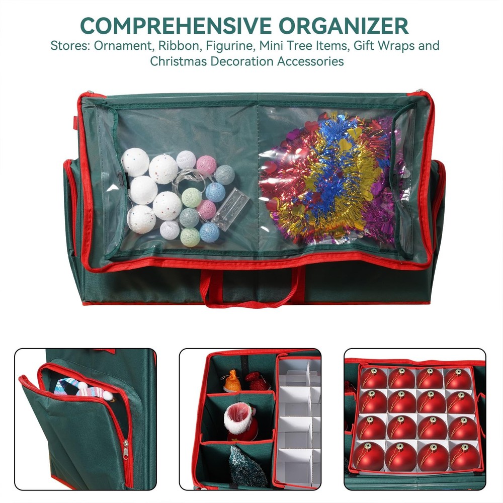 Christmas Ornament Storage Box,2-in-1 Christmas ornament organizer&Christmas Figurine Container,5 Trays,6 Adjustable Christmas Figurine Storage Grids,Green 【2-In-1 Design】The Christmas Ornament Storage Box is a 2-in-1 design, serving as both a Christmas ornament organizer and a Christmas figurine container. With this dual functionality, it meets your diverse storage needs during the Christmas season, saving you the trouble and cost of buying multiple storage boxes while also saving space. 【Abundant Storage Structures】This ornament storage box Equipped with 5 trays for conveniently sorting and storing various small Christmas ornaments. It also has 6 adjustable Christmas figurine storage grids providing dedicated spaces for your figurine collections. Additionally, there are 4 side pockets and 2 visible pockets on the flap that can hold irregularly shaped items or those needed for temporary storage. This diverse storage structure ensures that all your Christmas decorations and figurines have their proper places, keeping them neatly organized and easy to find and use. 【High-Quality Material】Our ornament storage Made of 600D oxford fabric, which is sturdy and durable. It is also waterproof and moisture-proof, effectively protecting your Christmas ornaments from damage. Even when stored in a humid environment, you don't have to worry about ornaments getting rusty or moldy due to moisture. At the same time, the oxford fabric is easy to clean. Just wipe it with a damp cloth to keep it clean and tidy. 【Strong Portability】With a reasonable size design, this ornament organizer can be placed in closets, attics, and other places at home. It can also be conveniently carried to other locations. If you need to display your Christmas decorations in different places or store them after the holiday, the portability of this storage box will bring great convenience. 【Beautiful and Practical】The ornament storage appearance design is simple and elegant, complementing the Christmas atmosphere. It can not only be used as a practical storage tool but also as a part of home decoration. When not in use, it can be neatly placed in a corner without taking up too much space, while also adding a festive touch to your home. Christmas Ornament Storage Box,2-in-1 Christmas ornament organizer&Christmas Figurine Container,5 Trays,6 Christmas Figurine Storage Grids,Green Shipping We offer FREE shipping on all orders! We ship within Three business days of payment, usually sooner. We use a selection of shipping services such as UPS, FedEx, USPS etc. We only ship to the lower 48 states, no APO/FPO addresses or PO Boxes allowed. Local pickups and combined shipping options are not provided at this time. International buyers – please note: Import duties, taxes, and charges aren't included in the item price or postage cost. These charges are the buyer's responsibility. Please check with your country's customs office to determine what these additional costs will be prior to bidding or buying. Order Cancellation Policy * Order Cancellation Policy ** You can return a product for up to 30 days from the date you purchased it. 1. The seller reserves the right to cancel the special case only due to eBay cancellation fee. 2. The decision of seller is the final. 3. The seller will respond to the cancellation request within 2 business days. Please wait for the result of cancellation. 4. In case the cancellation is not completed by some reasons, the buyer can follow the options below to get the refund. 4.1 The buyer can reject the item when it arrives. 4.2 The buyer can send the item back to the seller within 30 days If the buyer receives item (USA Shipment ONLY). The seller will provide the FREE return label to the buyer when the buyer opens " Return Item" case on eBay by using the reason as "Change my mind" ONLY. 5. When buyer has placed the order. The order will be processed and completed by automatic warehouse system within 5 minutes. In case that buyer sends the cancellation request after 5 minutes of placing the order, the request will be rejected. **Sending direct message to cancel the order is not allowed for every case.* Return Policy - If buyer would like to return the items for refund or replacement, please CONTACT SELLER to receive the free return label from seller. The refund or replacement will be processed with the tracking number of return label which is provided by seller only. The other ways of return which are not approved by seller will not be processed for the refund or replacement. Return You can return a product for up to 30 days from the date you purchased it. Any product you return must be in the same condition you received it and in the original packaging. Please keep the receipt. Payment We accept payment by any of the following methods: eBay Payments Please pay as soon as possible after winning an auction, as that will allow us to post your item to you sooner! Feedback Customer satisfaction is very important to us. If you have any problem with your order, please contact us and we will do our best to make you satisfied. Contact Us If you have any queries, please contact us via ebay. We usually respond within 24 hours on weekdays. Please visit our eBay store to check out other items for sale! Thank you for shopping at our store.