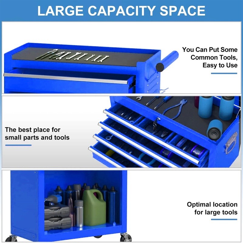 You may also like Floating Tool Rack Heavy Duty Pegboard Storage Holds 40 Tools Garage Organizer 72.54 USD 76.36 USD Free shipping 5% off 5-Drawer 2-in-1 Rolling Tool Box Chest Cabinet on Wheels for Garage Workshop New 185.24 USD 194.99 USD Free shipping 5% off 2-in-1 Rolling Tool Chest Box Cabinet on Wheels for Garage Workshop 5-Drawer Red 155.6 USD 163.79 USD Free shipping 5% off 22in Plastic Portable Tool Box Hardware Storage Organizer Removable Utility Tray 25.79 USD 27.15 USD Free shipping 5% off Power Tool Organizer Cart W/ Charging Station Garage Floor Rolling Storage Cart 132.51 USD 139.48 USD Free shipping 5% off The AK-HTS1-001 2 in 1 rolling tool chest is sturdy, and not easy to deform or bend. made of high-quality cold-rolled steel. And coated with an anti-corrosion paint surface which is waterproof and rustproof. Design to organize and store tools better! Perfect for any kind of project – DIY projects, home improvement, auto mechanics, and more. The tool chest has 5 drawers and 1 large bottom cabinet, which has various spaces to store various tools. this tool box is designed with 4 360° universal wheels(2 brake wheels) to make it ideal for professionals who need to bring their tools to different job sites. Meanwhile, comfortable side handles make it easier to push or pull the tool chest, provide stability and support, and improve control and maneuverability. This rolling tool chest is great for home workshops and some professional environments and could be placed in the garage, workshop, warehouse, etc. CONVENIENT STORAGE SOLUTION - Our AK-HTS1-001 rolling tool chest offers ample space to organize and store your tools, ensuring easy access and efficient workflow in your garage or workshop. (Tips: For the convenience of transportation, we placed the top of the toolbox at the bottom of the toolbox. ) DURABLE CONSTRUCTION - Built with high-quality materials, our tool chest is designed to withstand heavy-duty use and resist wear and tear, providing long-lasting durability and reliability. Design to organize and store tools better! Perfect for any kind of project - DIY projects, home improvement, auto mechanics, and more. SMOOTH ROLLING WHEELS - Equipped with sturdy wheels, this rolling tool chest allows for effortless mobility, making it easy to transport your tools to different locations within your workspace. VERSATILE DESIGN - With multiple compartments and drawers, our tool chest offers versatile storage options, allowing you to categorize and arrange your tools systematically for quick identification and retrieval. SECURE LOCKING SYSTEM - Rest assured that your tools will be safe and secure with the built-in locking mechanism of our rolling tool chest, providing peace of mind when storing valuable or sensitive equipment. PRODUCT INFORMAITON Overall: 23” L x 11” D x 47. 2” H Overall Product Weight: 38. 6 lb Box Size: 27” L x 13” W x 22. 5" H;46 lb Product Type: Rooling Tool Chest Primary Material: Steel Locking System: Yes Drawers Included: Yes Number of Drawers: 5 Ball-Bearing Drawer Glides: Yes Color: Red; Blue; Black; Orange Drawer Liner Included: Yes Soft Close or Self Close Drawer Glides: Yes Wheels Included: Yes Locking Casters/Wheels: No Removable Casters/ Wheels: Yes Cabinet: Yes Shelves Included: Yes Number of Shelves: 1 Legs Included: No Power Strip Included: No Side Push Handles: Yes Supplier Intended and Approved Use: Residential Use Weight Capacity: 300 lbs Powder Coated: Yes Drawer Slide: Soft Close; Ball Bearing Worktop Material: Steel Adjustable Shelves: Yes Assembly Required: Yes Installation Location: Wheels; Side Push Handles You may also like Floral Medley 3-Compartment Utensil Holder Kitchen Organizer Ceramic Stoneware 32.12 USD 33.81 USD Free shipping 5% off Painted Meadows Mug Set 15oz Ceramic Microwave Dishwasher Safe Rustic Kitchen US 13.16 USD 13.85 USD Free shipping 5% off Vintage Floral Canister Acrylic Knob Kitchen Storage Coffee Tea Flour Home Decor 29.24 USD 30.78 USD Free shipping 5% off Scalloped Stoneware Serving Bowl Durable Microwave Dishwasher Safe Centerpiece 23.52 USD 24.76 USD Free shipping 5% off Fresh Floral Glass Hummingbird Feeder Ant Moat Leakproof 20oz 6 Feeding Ports US 20.57 USD 21.65 USD Free shipping 5% off Electric Salad Spinner Wash Dry Vegetables Fruits Lettuce Bowl Kitchen Tool New 26.68 USD 28.08 USD Free shipping 5% off Wildflower Enamel Steel Colander 5 Quart Colorful Floral Design Kitchen Tool New 32.8 USD 34.53 USD Free shipping 5% off Keepsake Floral Stainless Steel Serving Spoon Set 2 Piece Cooking Mixing Serving 14.38 USD 15.14 USD Free shipping 5% off Peel Stick Removable Floral Wallpaper Adhesive Vinyl Home Decor 30.75sq ft New 25.08 USD 26.4 USD Free shipping 5% off Tulip Fragrance Oil Diffuser Plug-in LED Night Light Aromatherapy Home Decor New 18.09 USD 19.04 USD Free shipping 5% off Comfortable Small Pet Bed Plush Polyester Farmhouse Floral Design Dogs New 40.78 USD Free shipping Ceramic Pig Planter W/ Drainage Hole Rustic Home Decor Garden Accent Piece New 27.64 USD 29.1 USD Free shipping 5% off