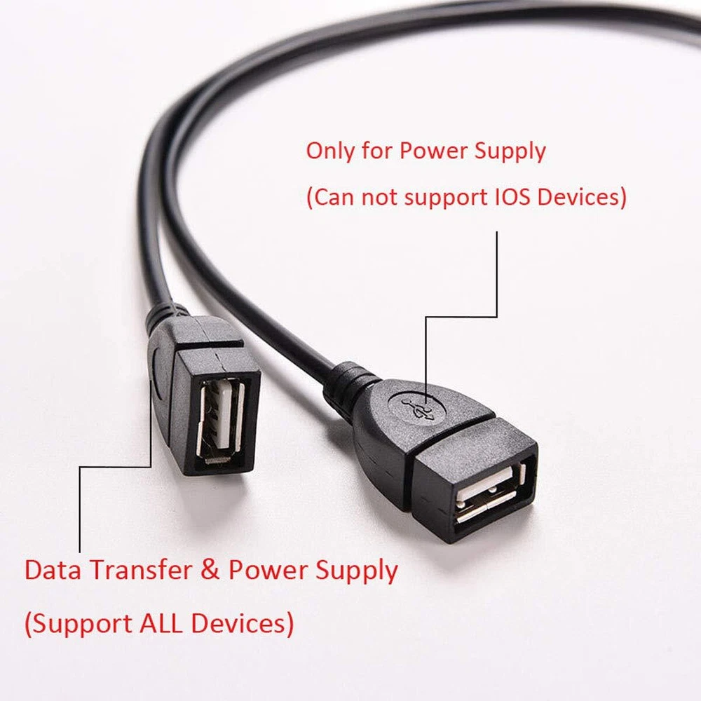 USB Splitter,USB Charger Cable,USB 2.0 A Male to 2 Dual USB Female Jack Y Splitter Hub Power Cord Extension Adapter Cable, for Laptop/Car/Data Transmission/Charging Etc.(2 Pack) Item Description About this item ★【USB Splitter Cable】: USB 2.0 Male is for all USB Devices; USB 2.0 Female, one is JUST for Power Charging ( CANNOT charge IOS devices ), the other one is for Data Transfer&Power Charging ( Support ALL devices ). › See more product details ★ Color:Black ★ USB 2.0 A Male to Dual USB Female Jack Y Splitter Charger Cable(2 Pack) ★ USB 2.0 Extender Cable and Usage ★One USB 2.0 Female is JUST for Power Charging ( CANNOT charge IOS devices ). As it cannot transfer data, so it CANNOT be connected with mouse or keyboard. ★The other USB 2.0 Female is for Data Transfer&Power Charging ( Support ALL devices ) ★USB 2.0 Male port serves as a 2-port USB hub for USB Devices. ★ Please note : One usb 2.0 Female can not transfer data. ★ONLY Compatible with USB C devices(laptop/ tablet/smartphone) that support DP ALT mode(display output) or Thunderbolt 3. If you not sure please feel free to ask us about the compatibility. ★ 100% quality and Brand new. ★Unique design for angled space black pvc braided cable with aluminum alloy case, flexible and durable, Plug & Play on universal system, no driver required ★The USB 2.0 male to female cables deliver the quality and value you've come to expect from us. Adaptermvp provides this cable with lifetime warranty and technical support. ★ What You will Get: ★2* USB 2.0 A Male to Dual USB Female Jack Y Splitter Charger Cable. Payment Fast and Free Shipping Shipping safe payment via eBay . Return 30 Day's returns