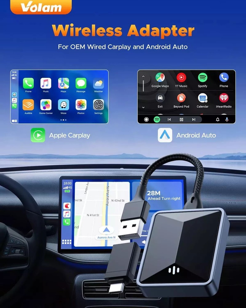 This wireless adapter is a game-changer! No more fumbling with cables—just plug it in, and CarPlay/Android Auto connects instantly. The setup is super easy, and the connection stays stable even on long drives. Love how it keeps all my car’s original functions while adding wireless freedom. Works flawlessly with my iPhone and my friend’s Android, making it perfect for shared cars. A must-have for anyone tired of dealing with wires!