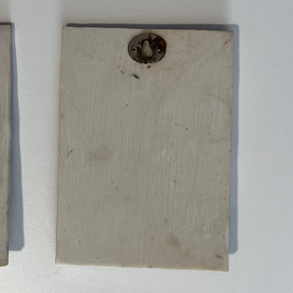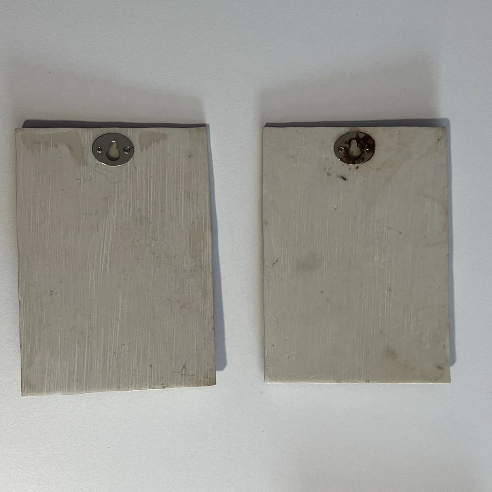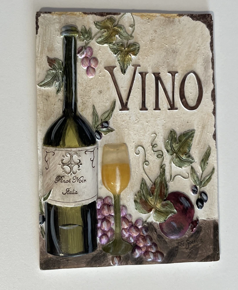 2pc 3D The Rustic Wine™ Vino & Wine Cellar Wall Plaques - Approximately 6.25" Tall x 3.5" Wide This pair is pre-owned and shows some wear, such as rust on one metal hanging piece on back, but there is much life left to live. They will add ambience to a kitchen, wine room, den and more. Please review all pictures carefully as they are part of the descrption. Questions are welcome.