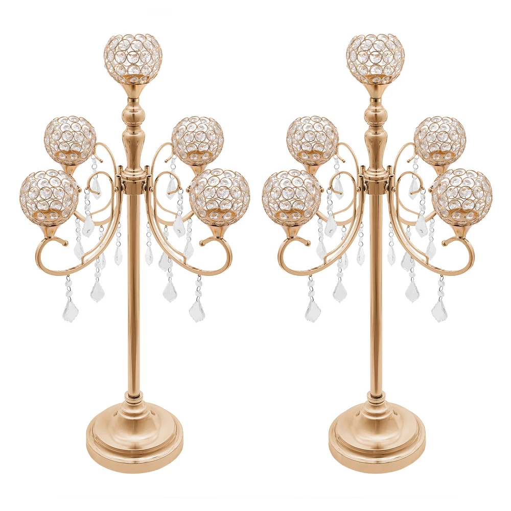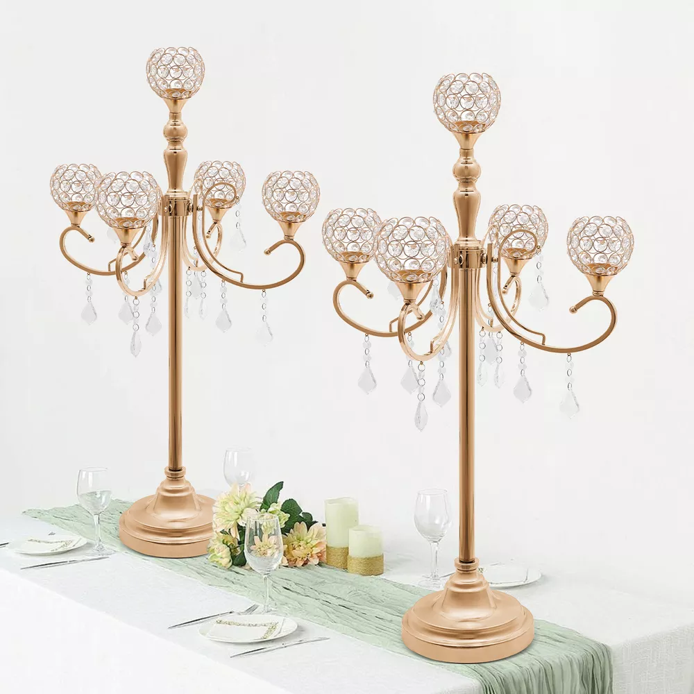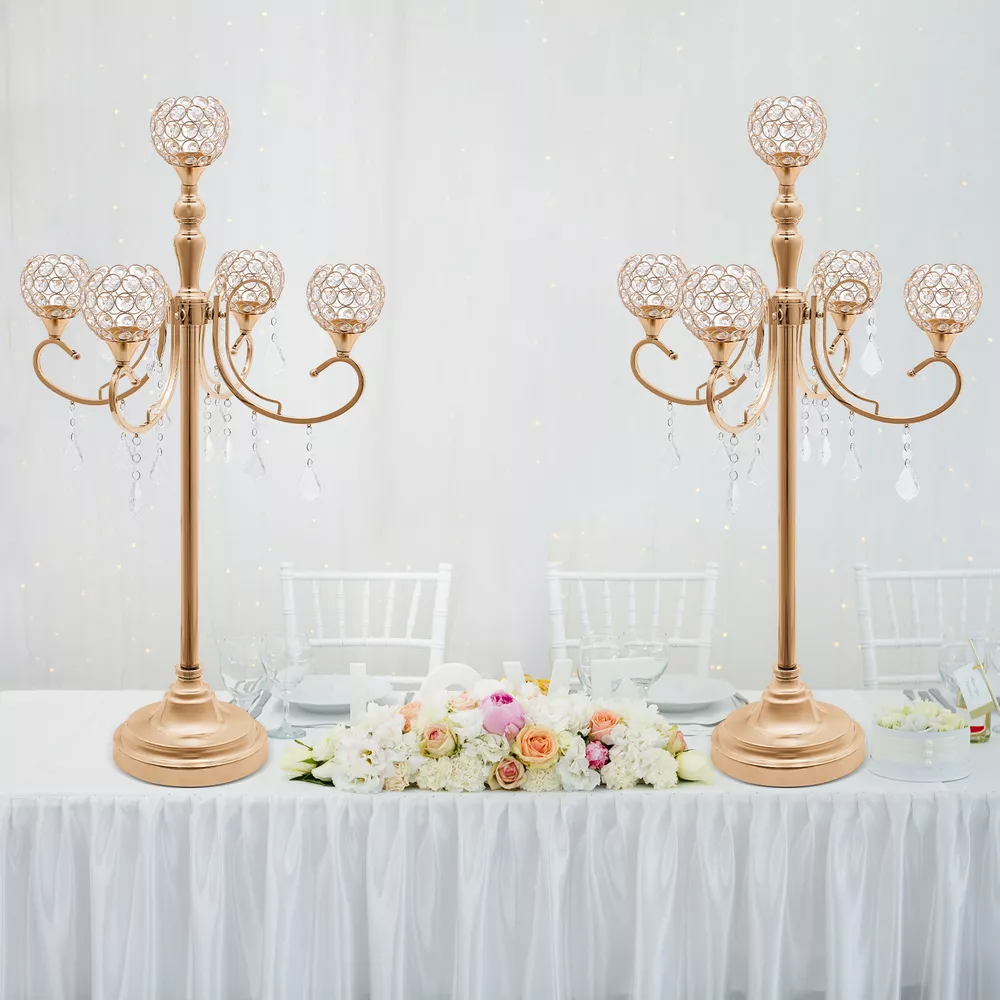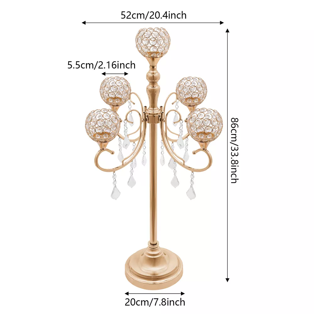2pcs Crystal Candelabra Centerpieces 5-Arm Candle Holder Centerpiece for Parties Beschreibung Application It is suitable for flameless and safe electronic candles with a diameter no larger than 1.97 inches. It can be applied to the home, such as the living room, bedroom, study, etc. It can also be used as a decoration item for hotels, restaurants, weddings, parties, celebrations, and other places. Specification Color: Gold Style: Modern Material: Iron, Glass Process: Electroplating Mount Type: Freestanding Assembly Required: Yes Applicable Candle Diameter: Within 5cm/1.97inch Applicable Candle Type: Flameless and Safe Electronic Candles Base Diameter: 20cm/ 7.8inch Each Candelabra Tray Diameter: 5.5 cm/2.16inch Total Height: 86cm/33.8 in Product Total Length: 52cm/20.4in Package Size: 42*25*25cm/16.54*9.84*9.84 in Gross Weight: 3.32kg/ 7.32 lbs Package Included 2* 5-arm Crystal Candle Holders Description Our 5-arm crystal candle holder is both stylish and practical. It is made of premium materials, which is durable. It combines European style with exquisite charm to add luxury and grandeur to the atmosphere. It will add a luxurious and romantic atmosphere to your home space, which can instantly enhance the artistic tone of the space. Come and buy it! Key Features Super Solid: It is constructed from high-grade iron and glass octagonal beads, treated with an electroplating process to make it durable, wear-resistant, heat-resistant, rust-resistant, and not easy to corrode and fade. Unique Appearance: Dazzling glass crystals crisscrossed the curved branches, reflecting a fascinating light. The symmetrical and stylish exterior design adds a comfortable atmosphere to your home space, matching a variety of furniture styles. Two-Piece Set: We offer you two pieces of candle holders to intermingle on your tabletop, providing a richer addition to your tabletop decor. Suitable Size: The right size will meet your display needs and will not block the view of guests when you place it on the table. Candle Companion: Using it with candles (not included) will bring light to your space and give you a sense of security with its warm light in the event of a power outage. Beautiful Symbol: The crystal symbolizes purity and nobility, and the five-arms pattern symbolizes reunion and happiness, which can bring good wishes and good luck to your family. Easy to Clean: Thanks to its simple structure and smooth surface, you can wipe the dirt from it with a soft cloth, which is convenient. Ideal Gift: Thanks to its practicality and beauty, you can give it to your friends as a holiday or housewarming gift! Buy with Confidence: We stand behind all our guests and look forward to assisting you with your purchase. It is our pleasure to answer your confusion and questions. The end of the story between us is not "we sell and you buy". Details Pendants: They make the whole product exquisite and beautiful, enhancing the decorative effect. Anti-slip Pad: The pad at the bottom effectively prevents the product from tipping over and improves the stability of the product. Notes Please note that candles are not included in the package. Please use the candle holder centerpiece on a flat area. Please be careful when using candles. Please keep it away from children and pets, and please do not leave burning candles unattended. Please allow the slight color difference caused by the shooting light and 1-3cm error due to manual measurement, and make sure you do not mind before ordering. Payment Delivery details Terms of sales About us Contact us Payment We accept ebay payment 。 Fees such as import duties, taxes are not included in the item price or shipping costs. These charges are the buyer's responsibility. Delivery details Shipping: 2-9 working days to: USA Terms of sales We maintain high standards of excellence and strive for hundred percent customer satisfaction. Feedback is very important to us. We hope that you contact us immediately before you give neutral or negative feedback, so that we can address your concerns. It is impossible to address issues if we do not know about them! About us Your satis faction is our ultimate goal. We work hard to earn your trust and future business. Our certified technicians have tested each item before shipping. The unit comes with 1 year limited warranty on all manufacturing defects. a) If you receive a defective item, you may return it or ask for a discount. Please contact us within 14 days after you receive the package. b) What you returned must be intact and in its original packaging as re? u. Customer is responsible for shipping costs of the returned item. c) We will cover the cost of shipping back t with the shipping rate indicated in the registration page. We will send you a new unit or refund the full payment you paid. Thank you. Contact us Business Hour Business Hour: Monday To Friday: 8:30 AM to 5:00 PM (Beijing China time) Due to time zones, our reply to your questions may not be immediately. But within above working time, we will reply your email within 24 hours. If it's non-workdays, please kindly be patient and wait till Monday. Please contact us with ebay message. Please feel free to contact us if you have any questions. Monday To Friday: 8:30 AM to 5:00 PM (Beijing China time) Due to time zones, our reply to your questions may not be immediately. But within above working time, we will reply your email within 24 hours. If it's non-workdays, please kindly be patient and wait till Monday. Please contact us with ebay message. Please feel free to contact us if you have any questions. On Feb 13, 2025 at 18:20:24 PST, seller added the following information: