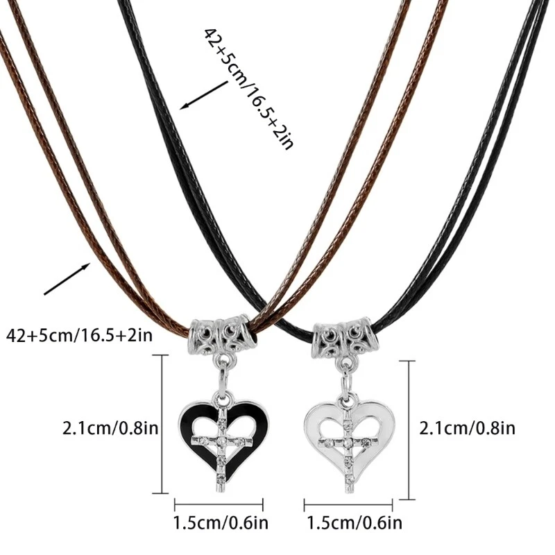2pcs Fashion Heart Cross Pendant Necklace Clavicle Chain Couple Jewelry Features: The length of the pendant chain can be adjusted according to needs, suitable for different neck sizes. Alloy+Wax Rope material, it is comfortable to wear without putting pressure on the neck. The is simple and elegant, suitable for pairing with various clothing styles, showcasing individuality and fashionable temperament. Suitable for couples to wear, symbolizing mutually love and commitment. It can also be given as a to showcasing friendship and blessings. Suitable for important dates such as couple anniversaries and Valentine's Day, adding a warm Can be used as a birthday or Valentine's Day Specifications: Alloy+Wax Rope X3113/X3114/X3117/X3084/X3116/X3118 Size: As Shown In The Picture Package Includes: 2x Necklace note: Please allow 1-2cm errors due to manual measurement, make sure that you do not mind before you order. Due to the difference between different monitors, the picture may not reflect the actual color of the item.