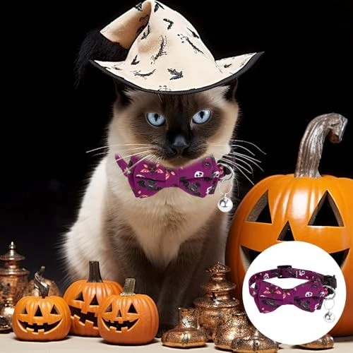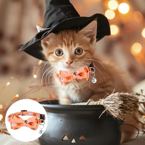$ 7.01Lamphyface 2 Pack/Set Halloween Cat Collar Breakaway with Cute Bow Tie Bow-1