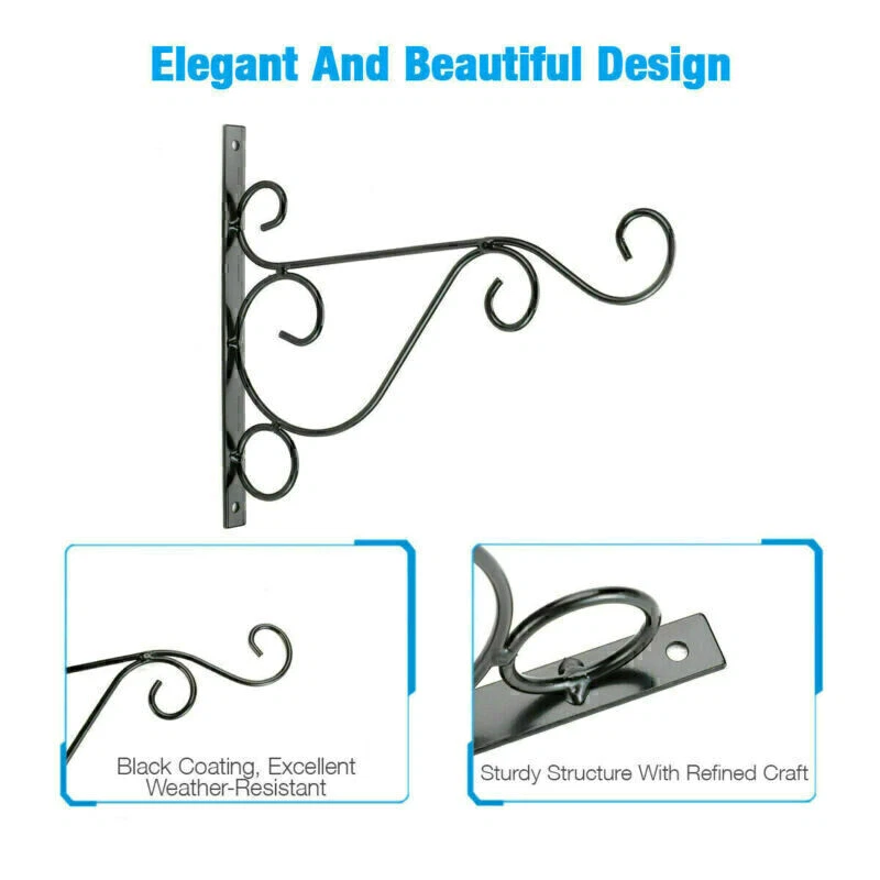 SAFE & SECURE SHOPPING 100% SATISFACTION GUARANTEED FAST SHIPPING 2pcs Heavy Duty Garden Hanger Hook Metal Hanging Basket Brackets Wall Decor Product Description If you have any questions, please contact customer service first, do not open disputes easily, thank you! Description: Simple but elegant wall plant hanger make your garden and home amazing. Max load weight: 5kg, can be installed into wood fence posts, deck posts,or indoor walls rust resistant, heavy duty steel construction, available for indoor or outdoor use, offers a charming and classic touch Perfect for small lanterns, basket, plants, lantern storm, path lights, bird feeders or wind chimes and more, decoration your garden, balcony and house Colour: Black Material: Metal Size: 21cm(H)x 25.5cm(L)x 2cm(Thickness) Package includes: 2 x wall hanger for plants + 4 x screws + 4 x Plastic Masterbatch Please Note: Only the above package content, other products are not included. Light shooting and different displays may cause the color of the item in the picture a little different from the real thing. The measurement allowed error is 1-3cm About Us About Us We accept all payments authorized by eBay. Copyright © 2022 Tongtool