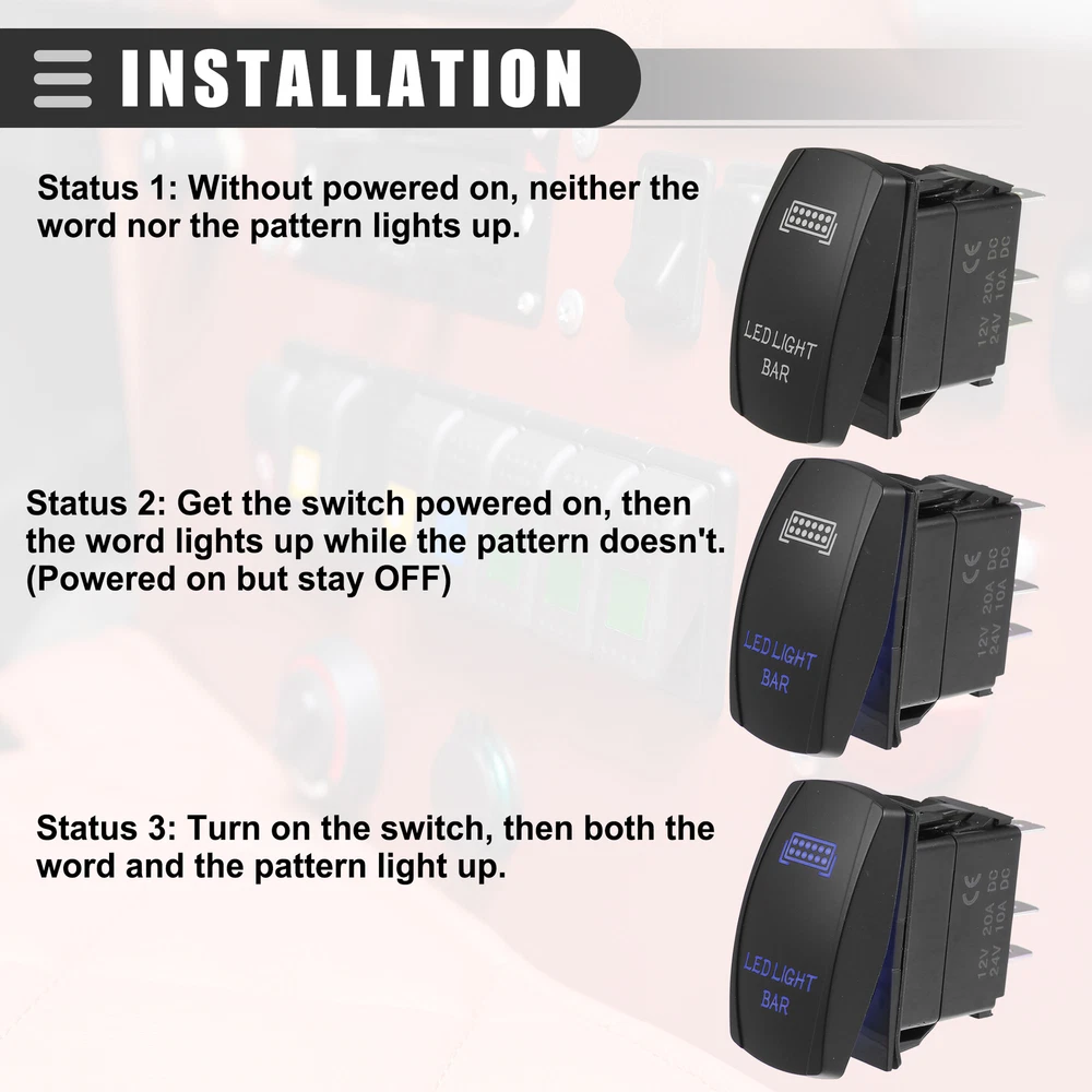 Document Universal Fit:for most car, truck, RV, motorcycle, boat, marine, ATV, UTV and for RZRProduct Details:Shell Color: BlackLight Color: BlueMaterial: PlasticCurrent Rating and Voltage: 20A/12V 10A/24VContact Type: SPSTWaterproof: YesDimension: 54x48x26mm / 2.13"x1.89"x1.02"(L*W*H)Advantage:Waterproof and can be widely applied in your automotive modification.Made of durable plastic, it's corrosion resistant and not easy to crack.Direct replace and install without special tools, convenient to use.Kindly Notes:This is non-OEM product, accessory ONLY!Please carefully check to ensure you get the correct part.Package Content:2 Pcs Rocker Toggle Switch 2pcs LED Light Bar 5 Pin Toggle Rocker Switch for Car Boat ATV UTV Blue Laser Universal Fit: for most car, truck, RV, motorcycle, boat, marine, ATV, UTV and for RZR Product Details: Shell Color: Black Light Color: Blue Material: Plastic Current Rating and Voltage: 20A/12V 10A/24V Contact Type: SPST Waterproof: Yes Dimension: 54x48x26mm / 2.13"x1.89"x1.02"(L*W*H) Advantage: Waterproof and can be widely applied in your automotive modification. Made of durable plastic, it's corrosion resistant and not easy to crack. Direct replace and install without special tools, convenient to use. Kindly Notes: This is non-OEM product, accessory ONLY! Please carefully check to ensure you get the correct part. Package Content: 2 Pcs Rocker Toggle Switch ITEM SPECIFICS Brand X AUTOHAUX Features Durable Manufacturer Part Number Does Not Apply OE/OEM Part Number Does Not Apply Type Rocker Toggle Switch Color Black Interchange Part Number Does Not Apply Universal Fitment Yes Product Name Rocker Toggle Switch Net Weight 57g Shell Color Black Other Part Number Does Not Apply Material Plastic Dimension 54x48x26mm / 2.13"x1.89"x1.02"(L*W*H) Package Content 2 Pcs Rocker Toggle Switch upc 703820213505 Manufacturer Warranty 3 Months NOTICE If you have any questions, please feel free to contact our customer service. Our response will be faster than eBay! Our Handling Time: within 24 hours on weekdays eBay Handling Time: 72 hours ABOUT US SHIPPING POLICY PAYMENT RETURN CONTACT US We are committed to providing professional, safe and effective personal care products. We strive to provide customers loved products at the competitive price. We work with suppliers to discover practical, easy-to-use personal care products. Our store not only offers quality products at the competitive price, but also has professional customer service, offers you comfortable shopping experience. Please don't forget to follow us on eBay. We will continue to update and provide more and more practical personal care products. switchpart thank you for your business! We work hard to safely and securely ship your order in the least amount of time. Storewide free shipping in United States. All our items will be shipped to buyer's address, please confirm your address on eBay before you purchase. Taxes and other charges are included in the item price or shipping charges. Buyers are responsible for these charges. We accept payment methods show in payment details. Payment must be received within 7 days of auction closing. According to eBay guidelines, all unpaid purchases case will be opened automatically. If you need to specify the color or other information for the items you purchased, please Click here to contact us directly with item # and your eBay ID. We offer a 30 day return policy. This is under the following conditions: The item must be unused and in a resalable condition otherwise are not eligible for a refund. All items returned by post are returned at your expense, we cannot be held responsible for this. Please use a traceable service. Generally we answer emails within 24 hours (excluding weekends & holidays). Questions or comments? We welcome your inquiry! Please feel free to contact us directly. Description Policy 2pcs LED Light Bar 5 Pin Toggle Rocker Switch for Car Boat ATV UTV Blue Laser Universal Fit: for most car, truck, RV, motorcycle, boat, marine, ATV, UTV and for RZR Product Details: Shell Color: Black Light Color: Blue Material: Plastic Current Rating and Voltage: 20A/12V 10A/24V Contact Type: SPST Waterproof: Yes Dimension: 54x48x26mm / 2.13"x1.89"x1.02"(L*W*H) Advantage: Waterproof and can be widely applied in your automotive modification. Made of durable plastic, it's corrosion resistant and not easy to crack. Direct replace and install without special tools, convenient to use. Kindly Notes: This is non-OEM product, accessory ONLY! Please carefully check to ensure you get the correct part. Package Content: 2 Pcs Rocker Toggle Switch ITEM SPECIFICS Brand X AUTOHAUX Features Durable Manufacturer Part Number Does Not Apply OE/OEM Part Number Does Not Apply Type Rocker Toggle Switch Color Black Interchange Part Number Does Not Apply Universal Fitment Yes Product Name Rocker Toggle Switch Net Weight 57g Shell Color Black Other Part Number Does Not Apply Material Plastic Dimension 54x48x26mm / 2.13"x1.89"x1.02"(L*W*H) Package Content 2 Pcs Rocker Toggle Switch upc 703820213505 Manufacturer Warranty 3 Months NOTICE If you have any questions, please feel free to contact our customer service. Our response will be faster than eBay! Our Handling Time: within 24 hours on weekdays eBay Handling Time: 72 hours ABOUT US We are committed to providing professional, safe and effective personal care products. We strive to provide customers loved products at the competitive price. We work with suppliers to discover practical, easy-to-use personal care products. Our store not only offers quality products at the competitive price, but also has professional customer service, offers you comfortable shopping experience. Please don't forget to follow us on eBay. We will continue to update and provide more and more practical personal care products. switchpart thank you for your business! SHIPPING POLICY We work hard to safely and securely ship your order in the least amount of time. Storewide free shipping in