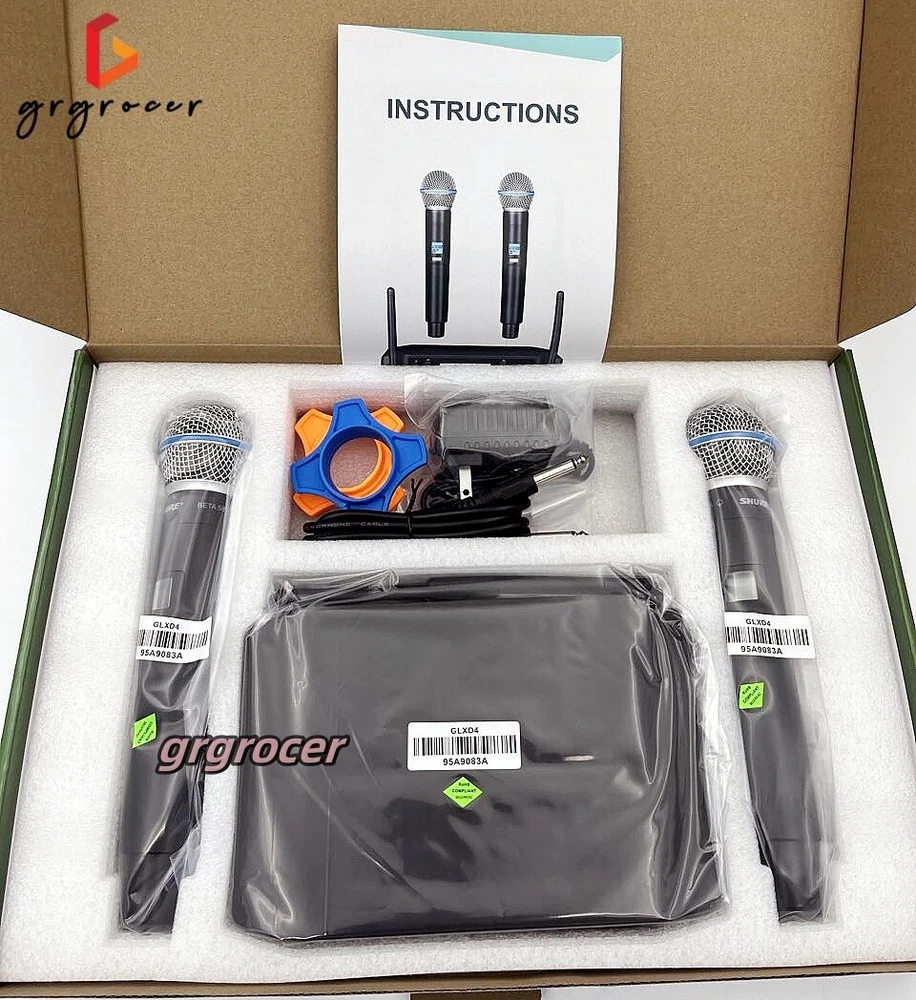 Product Description Welcome to my shop! We are committed to bringing you the best service and the most perfect goods. Come and choose. Best wishes to you! 2pcs Microphone Shure GLXD4+BETA 58A Professional Wireless Microphone System w Features •Backlit LCD display showing RF level, AF level, Channel Frequency. •100 Selectable frequencies on each channel. •Built-In Tone Lock Squelch circuit protection from RF interference •Automatic transmitter setup, the channel of the transmitter and receiver can easily synchronize •Dual channel receiver, Both microphones can be used at the same time •Two XLR individual outputs and one 1/4" Mixed output •Individual volume control on each channel •Frequency: UHF 640~690MHZ •Frequency Response: 45Hz~18KHz •Battery Life: 10 Hours ( AA batteries ) •Range: Up to 282 feet ( 80 meters ) •Rack mountable, Fits 8.27" rack Package includes: •(1) Dual channel UHF receiver •(2) Hand-held microphones •(1) 1/4" audio cable •(1) AC-DC adapter ( 110V-240V universal ) •(4) Manual Notice: Please don't open cases or return requests without contacting me. If you have any questions about quality, shipping or other problems, please contact me first via eBay message. About Us All items are brand new and packed by box. The additional packing material will help you reduce the damage risk a lot during the transportation. We fully understand how challenging it is to be a successful transaction. If you are not 100% satisfied with your purchase, please do not hesitate to tell us, our sales representatives will try the best to make you happy. Customer satisfaction is our priority consideration! Payment We accept PayPal /Visa / Apply Pay / Google Pay / Local bank payment . Shipping All items will be shipped out in 1-2 business day, no expedited service available. We ship our items to USA only(Does NOT include Hawaii, Alaska or Puerto Rico, PO Boxes/APO's). Returns We accept 30 days return ,but Please keep in mind that spending time before purchasing the part to confirm it is indeed exactly what you need can help prevent you from ordering the wrong part. Please remember to email us which warehouse to send the item back before return. And all returns must be shipped back in their original factory packaging. Shipping damage is any item/package suspected of being broken or damaged in anyway during the shipping process. We purchase full insurance for this, however the damage must be reported to us within 3 days of receiving the package. Anyway ,by nice communications ,we can find a way to make you satisfied. Contact Us Any Questions, Just feel free to contact us on eBay. We will reply you in 1 business day. Feedback We are happy to exchange positive feedbacks. Please leave us all positive feedbacks and all "5 Star" ratings, we will do the same to you. Please do not leave us any negative or neutral feedbacks before contacting us to solve the problem. Got any questions about this listing or the product that you've already purchased? Please feel free to contact us by using ebay message, we open Monday-Friday and also please notice that no emails will be replied during Weekens and holidays. NEW 16100-Z0L-853 Carburetor Fits For Honda GCV160A GCV160LA GCV160LAO 36.5 USD Free shipping New Wahl Professional 8148 5-Star Series Cordless Magic Clip Cord / Clipper US 68.5 USD Free shipping Wireless Vocal System SHUR BLX288 / Beta 58A w/2 BETA58 Microphones Express US 200.0 USD Free shipping Wahl 8412 Professional 5 Star Series Cordless Retro T-Cut Trimmer Free Shipping 61.9 USD Free shipping New 8148-700 WAHL Professional 5 Star Cordless Magic Hair Clipper With Base 85.0 USD Free shipping FX787BN BaByliss PRO Black Gold Skeleton Metal T-Blade Cordless Hair Trimmer 98.0 USD Free shipping powered by