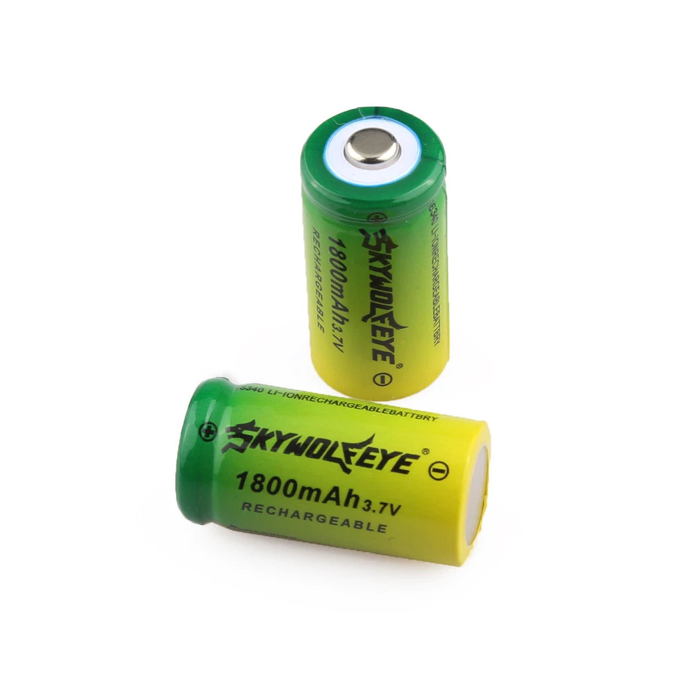 Features: Brand New and high quality Battery Type: 16340 Rechargeable Battery Model : 16340( Replace for CR123A, , K123A, VL123A, DL123A, SF123A 123A ) Voltage: 3.7V Capacity: 1800mAh Material: Li-ion Battery For appliances like Camera,Flashlight, toys etc. Specifications: Size:about 34*16*16mm Color:yellow-green Packing Content: 2 x 16340 Rechargeable Battery Please note that these are not the 3.0 volt batteries. Make sure your flashlight will handle these. WARNING: 1.New battery must first charge and then use , or the battery is most likely over-discharge , lead scrap. 2.The voltage of full charge and cut-off discharge is 4.2V and 2.75V. 3.Don't heat,incinerate or reverse polarity. 4.Please do not make the battery over discharge, over-discharge of lithium is not a failure but scrapped. Shipping 1. We ship your orders within 1-2 business days after the payment cleared. 2. with the tracking number, most reach USA about 2-8 working days. 3. Delivery time depends on destination and other factors, it may takes up to 20 days. If you don't receive the item after 25 days,please contact us, we'll investigate and solve the delivery problem.