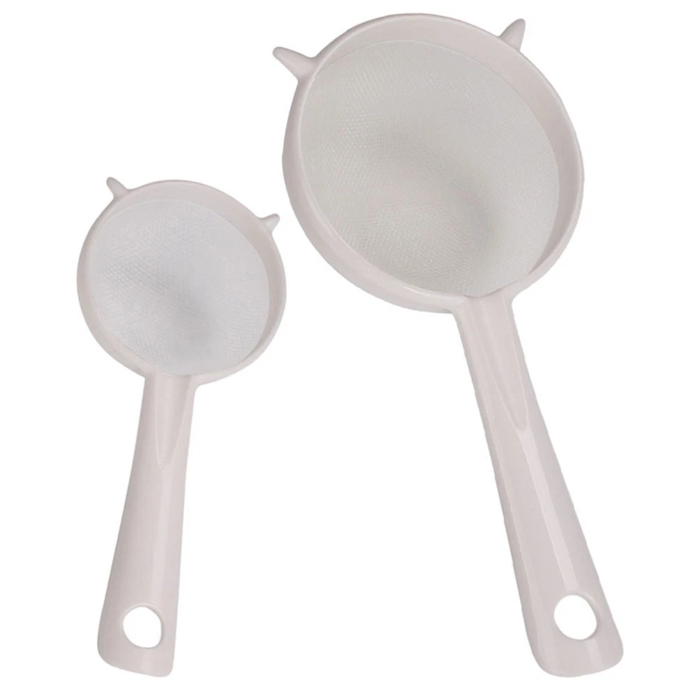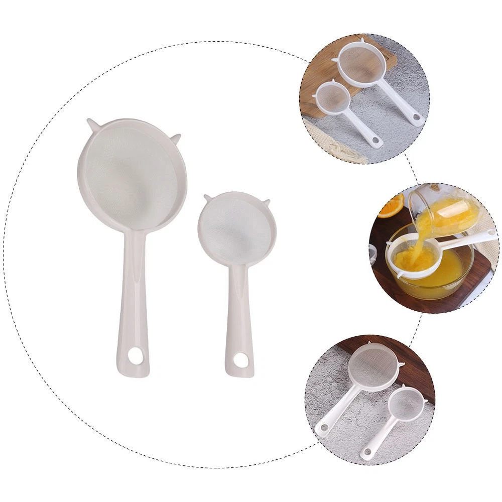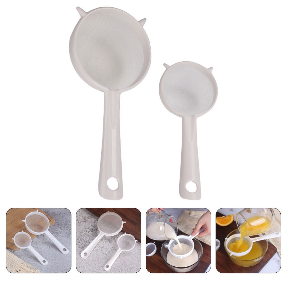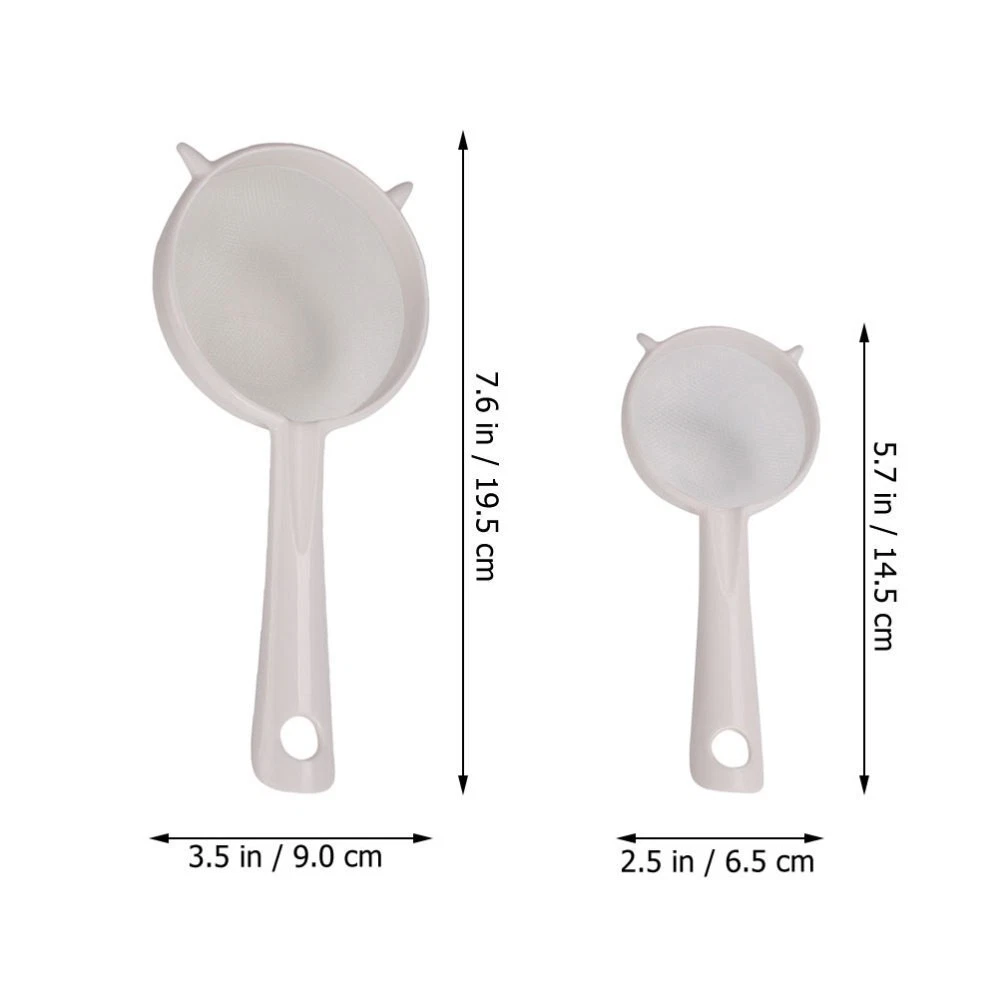 Description This ultra fine mesh strainer can be in kitchens, restaurants and more, with excellent and wonderful workmanship. Also, it can be good gift choice for your friends, they will like it, will be one of the best choices for home use. Come and take it home! Mesh Sieve,Ultra Fine Mesh Strainer,Kitchen Supply,Mesh Strainer,Yogurt Strainer,Kitchen Strainer Features -Color:White -Material:PP, nylon -Size:19.50X9.00X5.00cm/7.66X3.54X1.97in (L) -Size:14.50X6.50X3.00cm/5.70X2.55X1.18in (S) - The strainers are excellent in filtering effects, will satisfy your different filtering requirements. - Made of good PP material, the handle is not easy to break, and made of nylon material, the mesh is not easy to tear. - The mesh strainer is suitable for home or restaurant use, easy to operate, and with good filtering function. - The mesh strainer is multipurpose, which can be to filter soy milk, juice, coffee, and so on. - There are two different sizes of mesh strainer that can meet your different kinds of filtering needs.