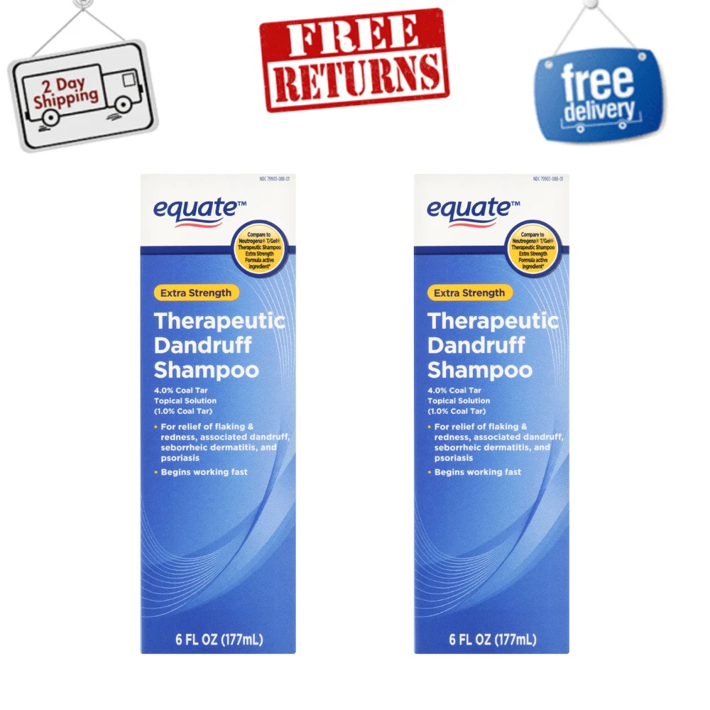 2pk Equate Dandruff Compared to Neutrogena T/Gel Therapeutic Shampoo Original Equate Beauty Extra Strength Anti Dandruff Coal Tar Shampoo, 6 Fl oz. Controls redness, intense itching and flaking for severe scalp conditions. Provides long lasting relief of itchy, flaky, scalp due to Psoriasis and Seborrheic Dermatitis. Helps control dandruff with excellent dandruff relief. Gentle enough for daily use and starts working after just one use, reduces symptoms for an entire week, and comes in an easy to transport 6 Fl oz bottle. Made with coal tar extracts proven to deliver effective scalp therapy for a healthy scalp. Compare to Neutrogena T/Gel therapeutic dandruff treatment shampoo. Equate Beauty Extra Strength Anti Dandruff Coal Tar Shampoo Long-lasting relief of itching and flaking Leaves hair clean and manageable Controls symptoms of dandruff, psoriasis, and seborrheic dermatitis Provides dandruff relief Gentle enough to be used daily 6 fl oz bottle Compare to Neutrogena T/Gel Shipping Policy FREE SHIPPING in all orders! Orders are usually processed and shipped out after 72 HOURS during BUSINESS DAYS (Monday to Friday) after payment has been received. But please be reminded that we are NOT processing and shipping orders during WEEKENDS and HOLIDAYS. Please make sure your ADDRESS is VALID for both UPS and USPS COURIER SERVICES. Please be reminded that costs incurred due to INCORRECT or UNDELIVERABLE ADDRESS should be shouldered by the buyer. The shipping services that we use are UPS, FedEx, USPS etc. We ONLY ship to the 48 STATES, NO APO/FPO ADDRESSES or PO BOXES. We DO NOT ship to warehouse, freight company. Local pickups and combined shipping options are NOT provided at this time. Return Policy DOMESTIC RETURN ACCEPTED - 30 DAYS. Contact us for more information. Payment Policy We accept payment by any of the following methods: PayPal Items can be returned for exchange or full refund WITHIN 30 DAYS from the date you receive your merchandise. We are not responsible for any purchase after this 30-day period. Feedback & Contact Us Customer satisfaction is very important to us. If you have any problem with your order, please contact us and we will do our best to make you satisfied. If you have any queries, please contact us via Ebay. We usually respond within 24 hours on weekdays. Thank you for shopping at our store.
