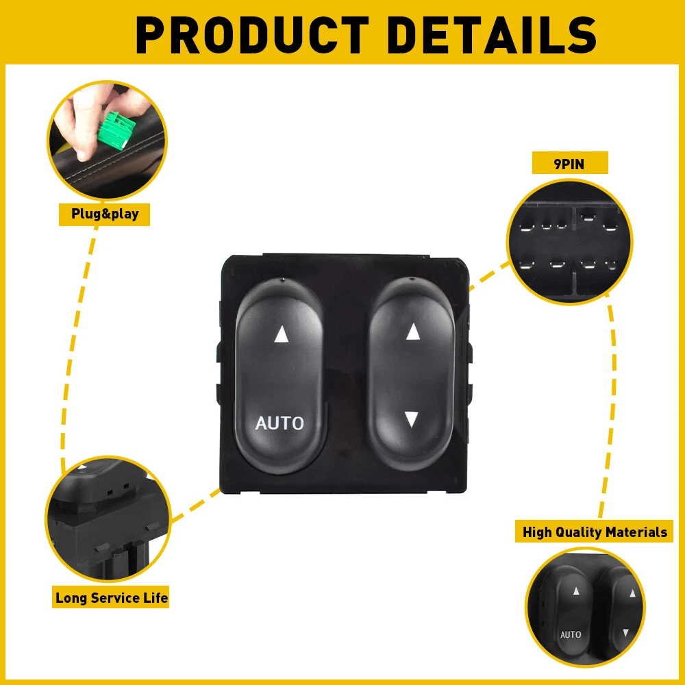 Fits for: Ford 99-2000 F-150 Base 2000 F-150 AUXITO Edition 2002 F-150 King Ranch 99-2002 F-150 (submodel: Lariat, Lightning, XL, XLT) 99 F-250 (submodel: Base, Lariat, XL, XLT) Specifications: OE:SW7091, DWS594, XL3Z14529AA, F65Z14529AAB Pin quantity: 9pin AUTO:1 Features: *Better stability with longer service life. *This power window switch fits, functions and matches the appearance of the original one for a perfect replacement. * Direct replacement without other tools. * It has undergone simulation and endurance testing to ensure proper fit and performance. 2set 9pin Master Power Window Door Switch Black For 1999-2002 Ford F-150 XL3Z145 Fits for: Ford 99-2000 F-150 Base 2000 F-150 AUXITO Edition 2002 F-150 King Ranch 99-2002 F-150 (submodel: Lariat, Lightning, XL, XLT) 99 F-250 (submodel: Base, Lariat, XL, XLT) Specifications: OE: SW7091, DWS594, XL3Z14529AA, F65Z14529AAB Pin quantity: 9pin AUTO:1 Features: *Better stability with longer service life. *This power window switch fits, functions and matches the appearance of the original one for a perfect replacement. * Direct replacement without other tools. * It has undergone simulation and endurance testing to ensure proper fit and performance. Packaging include: Window control switch*1 Item Specifics Brand Unbranded To Control Window Placement on Vehicle Door Features Durable Manufacturer Part Number SD-00000488 OE/OEM Part Number SW7091 DWS594 XL3Z14529AA F65Z14529AAB Type Switch Assembly Material Plastic Color Black Interchange Part Number XL3Z 14529-AA Ford F-150 years 1999 2000 2001 2002 Left Driver's Side Lifetime Warranty Free Shipping Master Power Window Door Switch Manufacturer Warranty Lifetime California Prop 65 Warning WARNING: This product contains chemicals known to the State of California to cause cancer and birth defects or other reproductive harm. Modified Item No Placement Driver's Door Master Fitment Type Direct Replacement Return Period 90 Days Other Part Descriptions Master Electric Power Window Switch Control Keywords 2 Cluster Front Rear Left OEM Part Replacement Keywords 1 Electric Power Door Panel Lock Window Control Surface Finish OE Standard Mounting Hardware Included No Retutn Period 90 Days - FULL REFUND Warranty Lifetime Warranty Years 1997 1998 1999 2000 2001 Model Cherokee Make Jeep Superseded Part Number SW7091, DWS594, XL3Z14529AA, F65Z14529AAB Superseded Part Number SW7091, DWS594, XL3Z14529AA, F65Z14529AAB FAQ ♥ If you have a decoding problem or any other problems, please contact us first, we will help you with it. We will reply you within 24 hours in working days. I'm a new seller, thanks a lot for your trust and convince! I will serve you with all my heart. ♥ Q1: Will this bulb fit my vehicle? A: We can match almost any vehicle to one of our bulb sizes. eBay only lets us include some vehicle fitments per listing, but if your vehicle does not show up on the compatibility table at the top of our listings, welcome you to contact us for free consulation before purchasing a product. Q2: My item has not arrived, what's taking so long? A: Sometimes items take longer than expected, especially if it’s going far or to rural area. Check with your post office to see if your item has been held up. Sometimes Royal Mail will not update a tracking number until it has arrived at its destination. If your item still don't arrive after a few days, let us know so we can double check for you and help solve it asap. Q3: My bulbs won't fit, help! A: Special bulb holder may be required. See if you can take the holder from the stock bulb. If not, let us know. The bulb size may be wrong, double check the item you received with the item you ordered. Do you have an aftermarket lighting housing? These may not be perfectly fitted for aftermarket bulbs and will require some manual modifications. Q4: Neither side lighting up? Both sides flicker, hyper flash, or work inconsistantly. A:Check the light fuses, and then check the ballast plugs to insure correct installation. If this doesn't work, there may be a voltage problem with the vehicle. You probably just need a relay or capacitor. Even though some bulbs are builtin resistors, they may still need a decoder. Pay & Ship (1). We gladly accepts payment via PayPal, We will ship your item(s) within 24 hours. (2). Before payment, please keep the consistency of Paypal address and ebay address. (3). Quantity orders are welcome! Returns (1). We offer 60 days free return policy. Please contact us within 60 days from the date you receive your order if you have any issues with the product or want return. Refund will be send after we got your resend package. (2). All returned items should be in the original packaging , return tracking information should be provided . Contact Us (1).Negative feedback will not help resolve any problems you have, please contact us via eBay messages before leaving negative feedback , our customer service will make best effort to help you with the issues. (2).We maintain high standards of excellenceand strive for 100% customer satisfaction! Feedback is very important to us. We request that you contact us immediately before you give us neutral or negative feedback, so that we can satisfactorily address your concerns. About us We're professional in car and motorcycle accessories, especially in LED bulbs. We have our own factory and R&D team. Our belief is to sell top quality items that fit your car and serve you with our heart. Anything please feel free to contact us! Our customer service is very responsibility. Come and follow us! DESCRIPTION NEW ARRIVED HOT SALE CONTACT US SAVE US Store Category Store Home Other Hot Item Master Power Window Control Switch For Dodge Avenger Chrysler 200 Jeep 4602780AB USD 23.74 12V LED 6 Gang On/Off Rocker Switch Panel Car Truck Boat Marine Inline Fuse Box USD 29.99 Left Driver Power Mirror Switch Control 15045085 For Chevy Silverado GMC Sierra USD 12.99 Oil Pressure Sensor Unit Sending For 03-08 Silverado Chevy 1500 2500 350