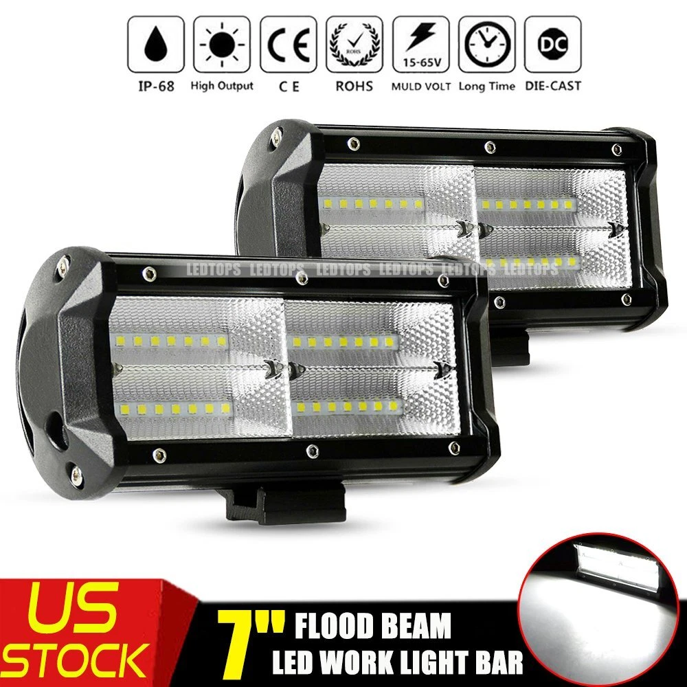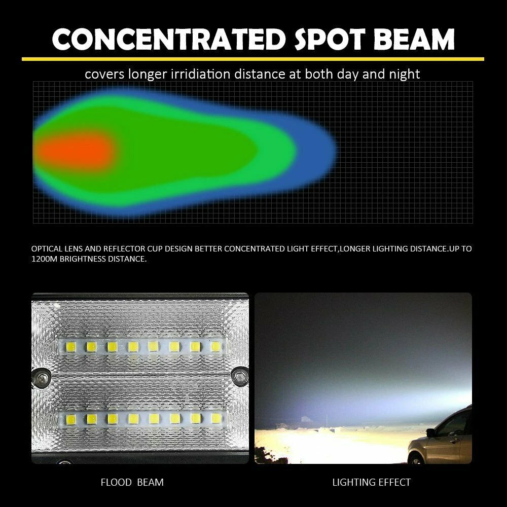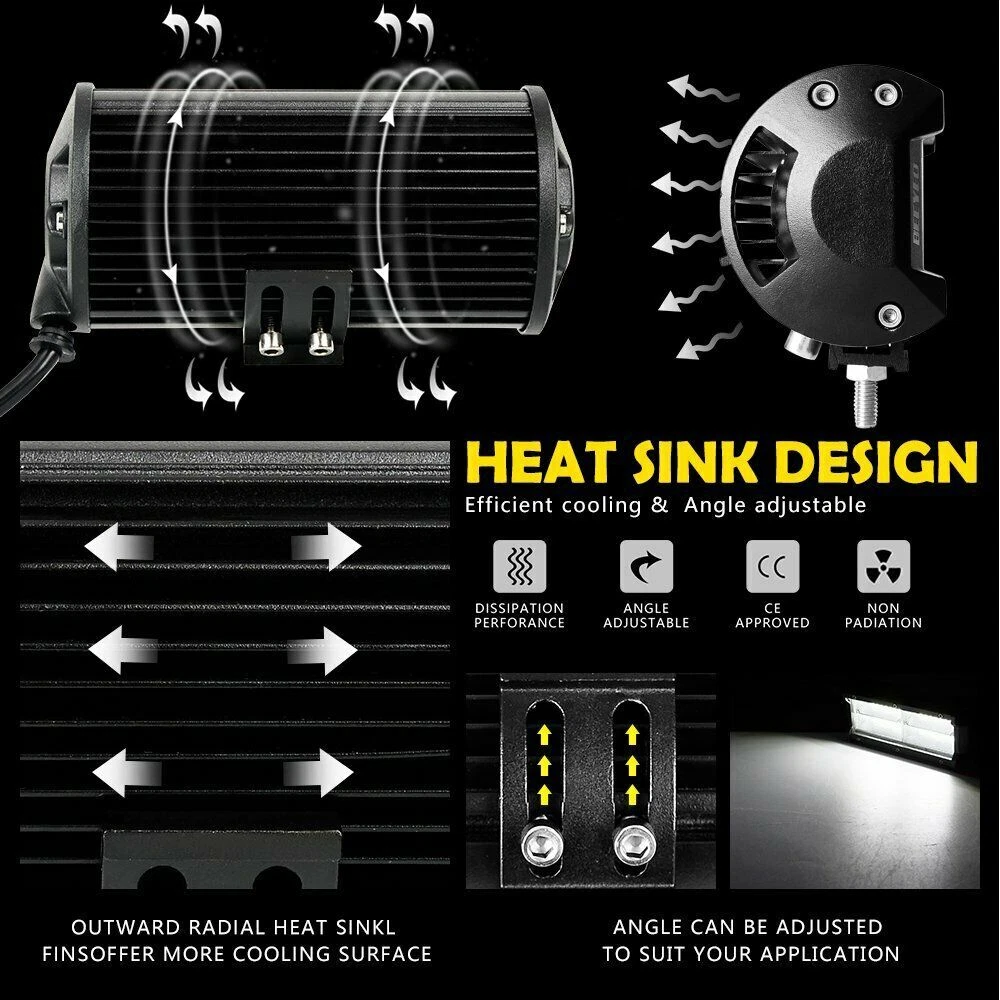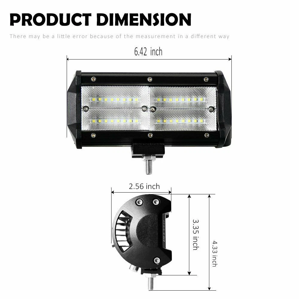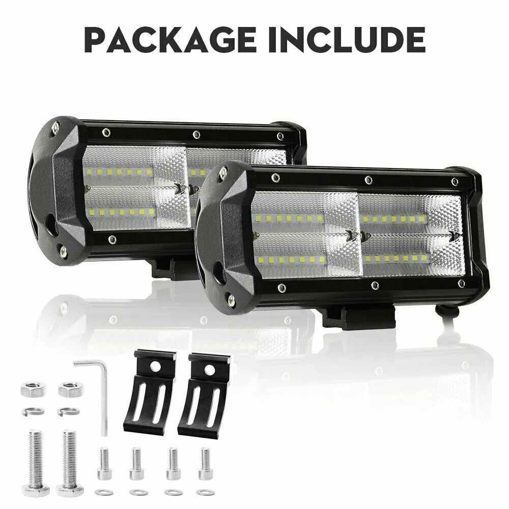 Feature: 100% brand new With the most exclusive Double row design, these LED pods emit 6000k-6500K bright white light, delivering 240w &20,000lm effectively light up entire forward dark road, turn night into day. IP68 waterproof rate and exclusive military breather can effectively resist water and moisture. Rustproof, dustproof, shockproof and quick cooling aluminum alloy heat sinks effectively extend the lifespan over 50,000 hours! Apply to all 10-30V vehicles and devices, can fit different types of Off Road, Truck, Jeep, Heavy Duty, SUV, ATV, UTV, Car, Boat, Motorcycle etc. Superior lighting efficiency to make sure these lights are 40% brighter than others in the market. Tir-row design provides standard tir-row bars, offering a big, bold look with unparalleled off-road illumination. With adjustable mounting bracket, these led pods can be adjusted to about 45 degrees, which makes changing direction of light beam easier. Specification: Dimension: 7INCH Light Color: 6000K Pure White Beam Pattern: flood Beam Fitment Type: Direct Replacement Beam Type: Combo Beam Operating Voltage: 10-30V DC Mounting Bracket: Aluminum ally with Stainless Steel brackets Material: Aluminum Housing Lifespan: About 50000 hours Placement on Vehicle: Front,Right,Left Lens Material: PC Waterproof Rate: IP68 Operation temperature: -40~60℃ Certified by CE & RoHs Models compatible: Universal fitment,included Trucks, forklifts, SUV off-road, engineering vehicles, cars, steamship, motorcycles, etc. Application: For Ford Ranger/Focus/F150/250/350/450/550/650/750 For JEEP Wrangler/Grand Cherokee/Rubicon/Compass For Chevrolet Colorado/Silverado 1500/2500/3500HD For RAM 1500/2500/3500/REBEL/PROMASTER/CHASSIS CAB For Polaris RZR XP/ACE/GENERAL/RANGER/Sportsman For Toyota Tundra/Tacoma/FJ Cruiser/Hilux/Prado For GMC SIERRA 1500/AMG G/Hummer H1/NISSAN TITAN For Pickup/Cab/ATV/SUV/UTV/Truck/Bus/4X4WD/UTE/Van BUY WITH CONFIDENCE : Your satisfaction is backed by our Risk-free 60 Day Money Back Guarantee. 3YEAR Warranty and Good after-sales. Package includes: 2 x 7inch LED LIGHT BAR Adjustable Mounting Brackets On Nov 12, 2024 at 00:22:24 PST, seller added the following information: