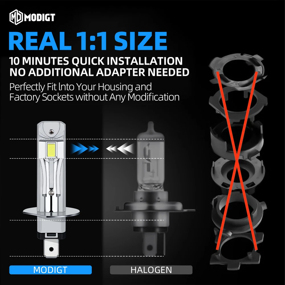 Feature: 【600% Brighter】MODIGT H1 LED headlight bulbs are designed with double-sided CSP LED chips, 6000K cool white, 20,000Lumen per bulb, 600% brighter than stock halogen bulbs, a perfect upgrade for halogen headlights. Allows driver get a farther, brighter, and clearer vision when driving at night. 【30,000+hrs Lifespan】The advanced CSP LED technology effectively reduces the energy consumption of H1 Led headlight during operation. Premium aviation aluminum effectively pull the heat away from the LED chips, which ensures long service life of up more than 30,000 hours. Breezesew Best choice of motor parts 2x CANBUS H1 LED Headlight Bulbs Kit Super Bright 6000K For Kia Rondo 2007-2012 Feature: 【600% Brighter】MODIGT H1 LED headlight bulbs are designed with double-sided CSP LED chips, 6000K cool white, 20,000Lumen per bulb , 600% brighter than stock halogen bulbs, a perfect upgrade for halogen headlights. Allows driver get a farther, brighter, and clearer vision when driving at night. 【30,000+hrs Lifespan】The advanced CSP LED technology effectively reduces the energy consumption of H1 Led headlight during operation. Premium aviation aluminum effectively pull the heat away from the LED chips, which ensures long service life of up more than 30,000 hours. 【1:1 Beam Pattern】MODIGT H1 LED headlights 1:1 simulate the beam pattern of halogen bulbs, use ultra-thin 0.03in baseboard to ensure 360° lighting without black spots. And the emitted light beam is focused on the ground, will not cause glare to oncoming drivers. 【5min Installation】Unlike other LED lights, MODIGT H1 headlight bulbs have no external driver and connector, fully all in one. That makes the bulbs almost the same size as the halogen bulb. Due to the wireless design, installation is a breeze, just plug and play. 【100% CANbus Ready】Built-in anti-flicker CANbus unit, H1 LED headlights are compatible with 99% of vehicles’ systems, no polarity, no radio interference, and error-free. Specification: Compatible With:H1 Power:20W/per bulb Lumens: 20000lm/per bulb Color Temperature:6000K White LED Chips: CSP Waterproof Level:Dustproof & Waterproof IP67 Operating Temperature: -40 - +80°C Lifetime:More than 30000 hours Work Voltage(V):DC 9V-32V(Fit 12V/24V vehicle) Applications:Headlight / fog driving light / daytime running light DRL Suitable For Pickup, Wagon, UTB, Cab, ATV, SUV, Jeep, Truck, Bus .etc Package Included: 2 x H1 LED Light Bulb Install Caution: 1. As a safety precaution, make sure that the car has had time to cool down properly before starting the installation process. 2. Put the vehicle into park or make sure it is securely in gear. 3. Make sure to have the ignition turned off and the keys removed. 4. Be careful to avoid burns, especially when turning on or off the vehicles lighting. 5. Be careful to avoid crushing or cutting the bulbs. Also make sure to not touch the bulbs with your fingers, as this will cause blotting. 6. Fully examine the connection of the contact points, ports and the wires as faulty connections can cause lighting problems. 7. Make certain that the end of the bulb does not come in contact with the interior light shield of the headlight when adjusting the bulb. Note: Please make sure it is suitable for your car before purchase. Please feel free to contact us if you have any questions. Item Specifics Brand MODIGT Lighting Technology LED To Fit Headlight, Fog Light, High Beam, Low Beam Bulb Fitment Code H1 Number of Bulbs 2 Light Color Cold White Type H1 White LED Light Bulb Features CANbus Compatible Fitment Type Direct Replacement Material Aluminum Color Temperature 6000K Wattage 40 W Voltage DC 9V-32V(Fit 12V/24V vehicle) Lumens 20000LM / bulb Application headlight / fog driving light / daytime running light DRL Ballast Included No Operating Temperature -40℃~ 80℃ Bulb Life Hours Up to 30,000 Hours Manufacturer Warranty 2 Years Note Replace Halogen ONLY LED Chips CSP Beam Angle 360 degrees Payment 1. It will be much appreciated that you finish your payment asap or it will make UPI (unpaid item case) on your account leading to be suspended or restricted by eBay when those UPI cases carry over to certain amount. 2. Any problems please contact us for more details. Shipping 1. All items will be shipped to buyer's ebay address. 2. All items will be shipped within 24-48 working hours upon receipt of payment, and multiple items will be combined shipping. 3. In most cases, delivery takes around 3-5 business days, it's highly depended on the efficiency of the shpping carrier. If your item doesn't arrive on time, please contact us immediately for further assistance. Please note there is no local pickup service available. Returns If you are not 100% satisfied with your purchase, you can return the product and get a full refund or exchange the product for another one. Please Note: Please write us a message before your return, otherwise we will not accept the package. Any product you return must be in the same condition you received it and in the original packaging. Contact Us 1. We care about our valued buyers, if you have any questions, our Customer Service staff will be very glad to help you. We try our best to reply your ebay message as soon as possible, please kindly allow 24 hours for us to response. 2. Our goal is to make sure you are a happy buyer and pleasant shopping with us. Please contact us before leaving any 1 or 2 star ratings, negative feedback or open any dispute. We understand the concerns and frustrations you might have, and will do our endeavor to resolve the issues. Breezesew Best choice of motor parts 2x CANBUS H1 LED Headlight Bulbs Kit Super Bright 6000K For Kia Rondo 2007-2012 Feature: 【600% Brighter】MODIGT H1 LED headlight bulbs are designed with double-sided CSP LED chips, 6000K cool white, 20,000Lumen per bulb , 600% brighter than stock halogen bulbs, a perfect upgrade for halogen headlights. Allows driver get a farther, brighter, and clearer vision when 