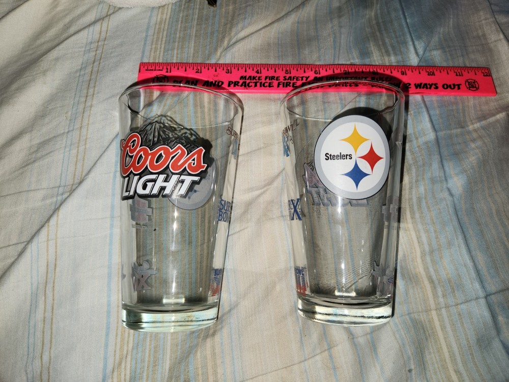2x Coors Light 6 Super Bowl Champions Pittsburgh Steelers Beer Pint Glass