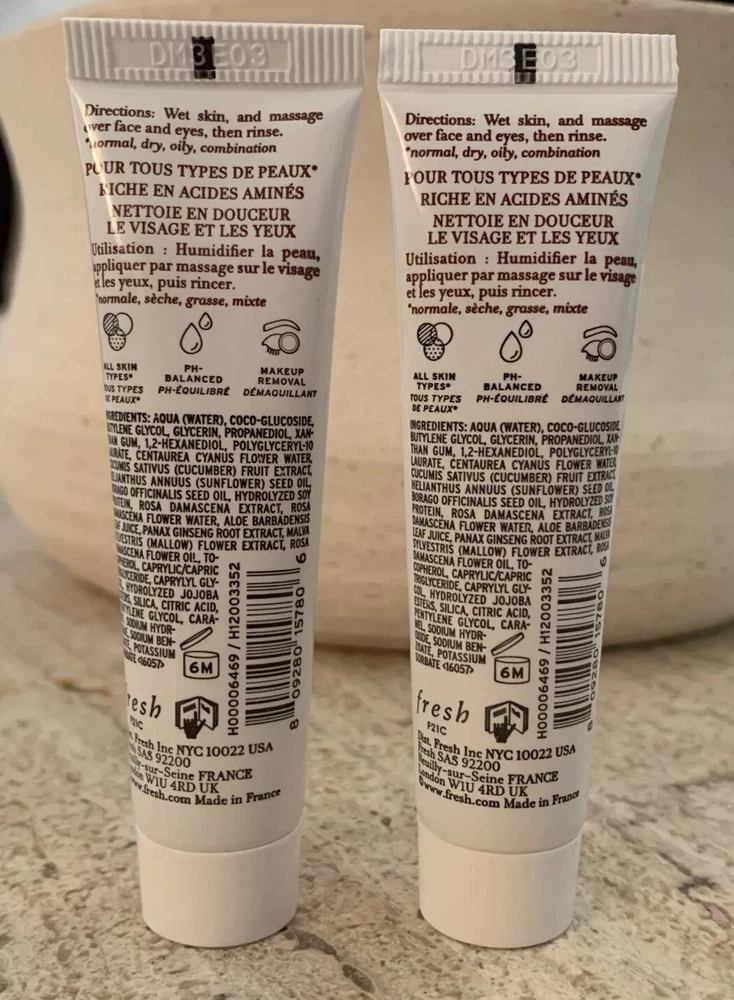 2x FRESH SOY FACE CLEANSER Gel Deluxe Travel Size 15ml/0.5oz BRAND NEW