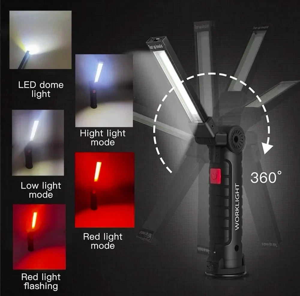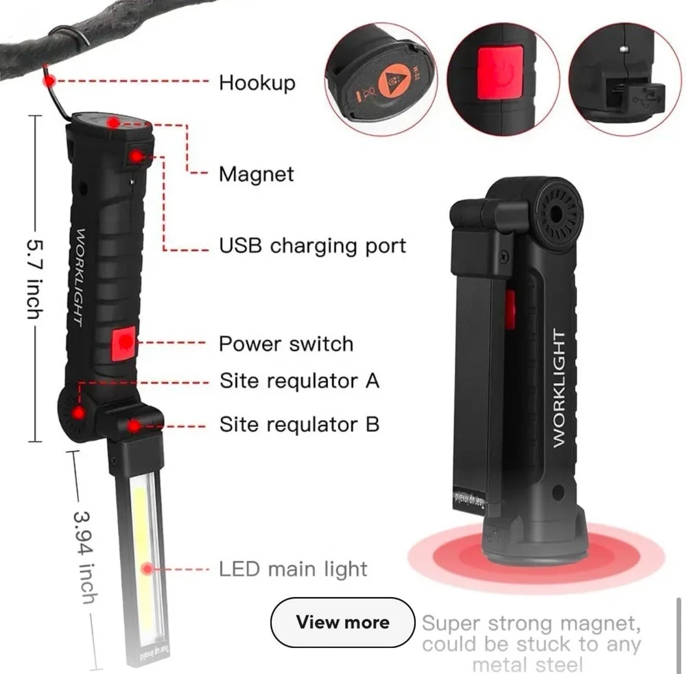 The Charles Jacobs COB LED Folding Flashlight is a portable work light and lantern designed with innovative features. It has a powerful 20000 lumens output with three LEDs and a rechargeable Li-Ion battery that can be charged via USB. The light is constructed from durable materials like ABS, aluminium, and metal in a sleek black design. It features a magnetic base for hands-free use and an operating range of 25 meters, making it ideal for camping, hiking, or any outdoor activities. Made in the United Kingdom, this versatile torch is a practical and reliable lighting solution.