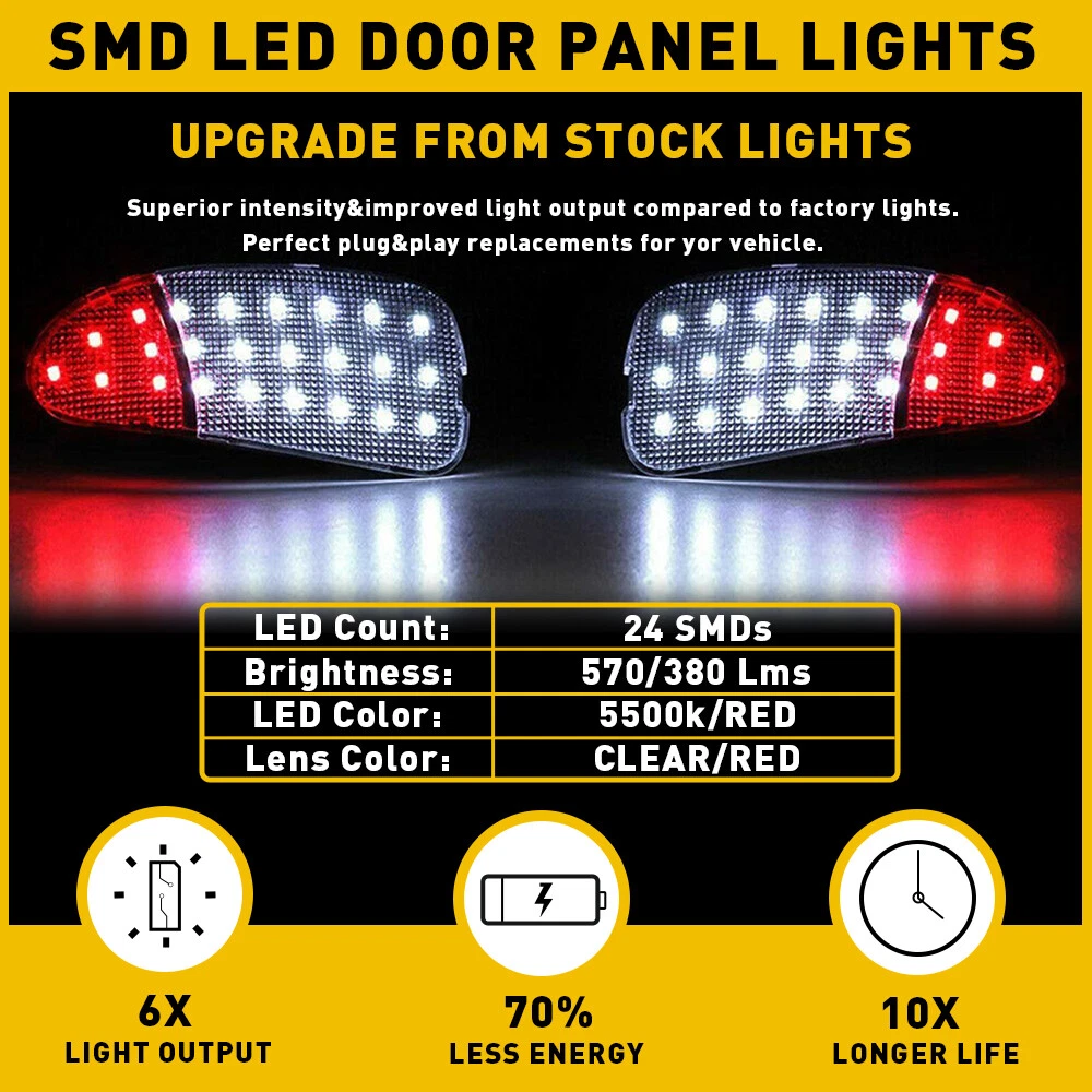 Fit for: 1997-2003 Ford F-150 1997-1999 Ford F-250 Specifications: OE:F65Z13B724AA, F65Z13B725AA Service life: 50000+ Waterproof: IP67 Light color: red/white LED quantity: 18LED(White) 6LED(Red) Lumen: 570LM(White) 380LM(red) Color temperature: 6000K(White light) Light housing:Transparent + red Placement on vehicle: left, right Features: *High brightness Built with 100% advanced high brightness LED chips,6X brighter than OEM light bulbs. *Superior material Superior LED beads with efficient energy-saving expand the service lifespan. *Long service life 2x LED Interior Door Panel Courtesy Light Lamp Pair For 1997-2003 Ford F150 Fit for: 1997-2003 Ford F-150 1997-1999 Ford F-250 Specifications: OE:F65Z13B724AA, F65Z13B725AA Service life: 50000+ Waterproof: IP67 Light color: red/white LED quantity: 18LED(White) 6LED(Red) Lumen: 570LM(White) 380LM(red) Color temperature: 6000K(White light) Light housing:Transparent + red Placement on vehicle: left, right Features: *High brightness Built with 100% advanced high brightness LED chips,6X brighter than OEM light bulbs. *Superior material Superior LED beads with efficient energy-saving expand the service lifespan. *Long service life ABS plastic housing and strong PC lens with waterproof, dustproof, and shockproof functions make the light more durable. *Easy installation Plug and Play, direct installation without wiring or modification. *Perfect match It is the perfect LED interior door panel light for your car. Packaging include: Door light*2(left+right) Item Specifics Brand AUXITO Color White/Red Color Temperature 6000K Features DOT-Certified,SAE-Certified Finish Powder-Coated,Textured Housing Color Chrome (Crystal) Interchange Part Number F65Z13B724AA, F65Z13B725AA Item Height 7.6cm Item Length 11.4cm Item Width 7.3cm Items Included Bulbs Lens Color Clear Light Color Cold White,Red Lighting Technology LED Manufacturer Part Number OEM#F65Z13B724AA, F65Z13B725AA Manufacturer Warranty 3 Years Mounting Style Simple Installation, Plug&Play Number of Bulbs 24LEDs OE/OEM Part Number F65Z13B724AA, F65Z13B725AA Performance Part Yes Placement on Vehicle Door Front Left Rear Right Type Interior Door Panel Courtesy Light Universal Fitment Yes Vintage Part Yes Voltage 12 V Wattage 3 W Material ABS FAQ ♥ If you have a decoding problem or any other problems, please contact us first, we will help you with it. We will reply you within 24 hours in working days. I'm a new seller, thanks a lot for your trust and convince! I will serve you with all my heart. ♥ Q1: Will this bulb fit my vehicle? A: We can match almost any vehicle to one of our bulb sizes. eBay only lets us include some vehicle fitments per listing, but if your vehicle does not show up on the compatibility table at the top of our listings, welcome you to contact us for free consulation before purchasing a product. Q2: My item has not arrived, what's taking so long? A: Sometimes items take longer than expected, especially if it’s going far or to rural area. Check with your post office to see if your item has been held up. Sometimes Royal Mail will not update a tracking number until it has arrived at its destination. If your item still don't arrive after a few days, let us know so we can double check for you and help solve it asap. Q3: My bulbs won't fit, help! A: Special bulb holder may be required. See if you can take the holder from the stock bulb. If not, let us know. The bulb size may be wrong, double check the item you received with the item you ordered. Do you have an aftermarket lighting housing? These may not be perfectly fitted for aftermarket bulbs and will require some manual modifications. Q4: Neither side lighting up? Both sides flicker, hyper flash, or work inconsistantly. A:Check the light fuses, and then check the ballast plugs to insure correct installation. If this doesn't work, there may be a voltage problem with the vehicle. You probably just need a relay or capacitor. Even though some bulbs are builtin resistors, they may still need a decoder. Payment (1). We gladly accepts payment via PayPal, We will ship your item(s) within 24 hours. (2). Before payment, please keep the consistency of Paypal address and ebay address. (3). Quantity orders are welcome! Returns (1). We offer 60 days free return policy. Please contact us within 60 days from the date you receive your order if you have any issues with the product or want return. Refund will be send after we got your resend package. (2). All returned items should be in the original packaging , return tracking information should be provided . Contact us (1).Negative feedback will not help resolve any problems you have, please contact us via eBay messages before leaving negative feedback , our customer service will make best effort to help you with the issues. (2).We maintain high standards of excellenceand strive for 100% customer satisfaction! Feedback is very important to us. We request that you contact us immediately before you give us neutral or negative feedback, so that we can satisfactorily address your concerns. About us We're professional in car and motorcycle accessories, especially in LED bulbs. We have our own factory and R&D team. Our belief is to sell top quality items that fit your car and serve you with our heart. Anything please feel free to contact us! Our customer service is very responsibility. Come and follow us! DESCRIPTION PAYMENT SHIPPING RETURN POLICY CONTACT US Shop Category Store Home Other Hot Item 2PCS O2 Oxygen Sensor Up+Downstream For 08-14 Chevrolet Equinox/GMC Terrain 2.4L USD 29.99 BLACK ROOF TOP TRIM MOLDINGS FOR 2006 2007 2008 2009 2010 2011 2012 TOYOTA YARIS USD 17.99 Front Headlight Lamp Filler Molding Trim Panel For Toyota 2012-2015 Tacoma S USD 18.99 AUXITO 7440 7443 7444 LED Backup Reverse Back Up Light Bulbs Super Bright White USD 12.59 5/16" Marine Outboard Boat Motor Fuel Gas Hose Line Assembly with Primer Bulb US USD 20.99 New List Item 4x AUXITO 9005 9006 Combo LED Headlight High Low Beam
